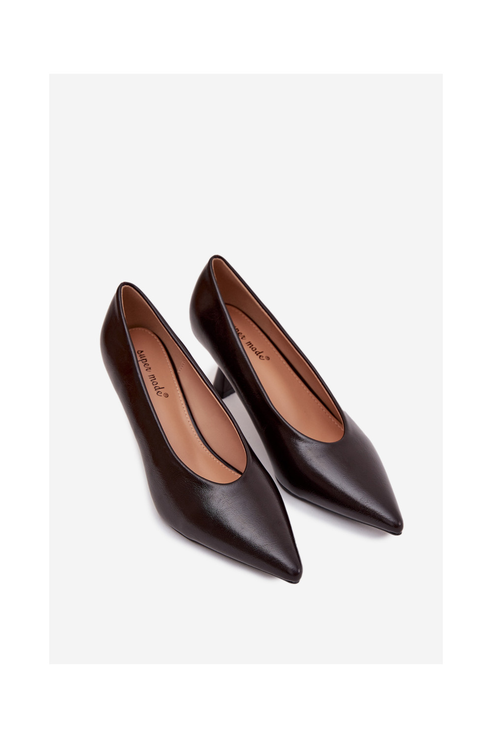 s efektem laku Obuv s tenkými podpatky Czekoladowe Gavrielle