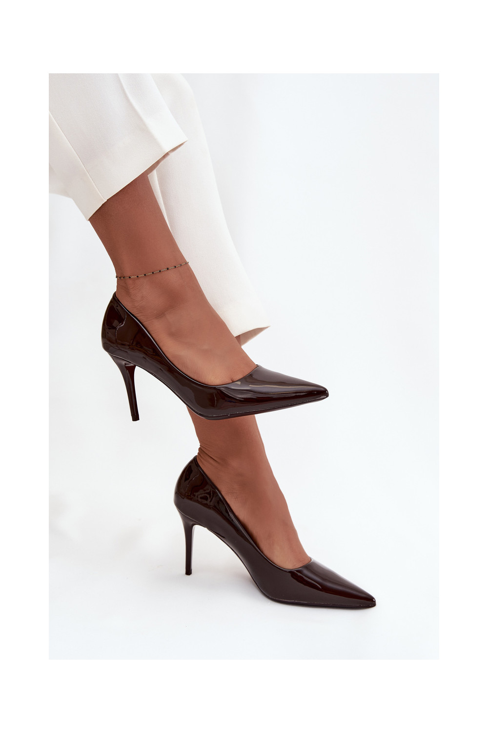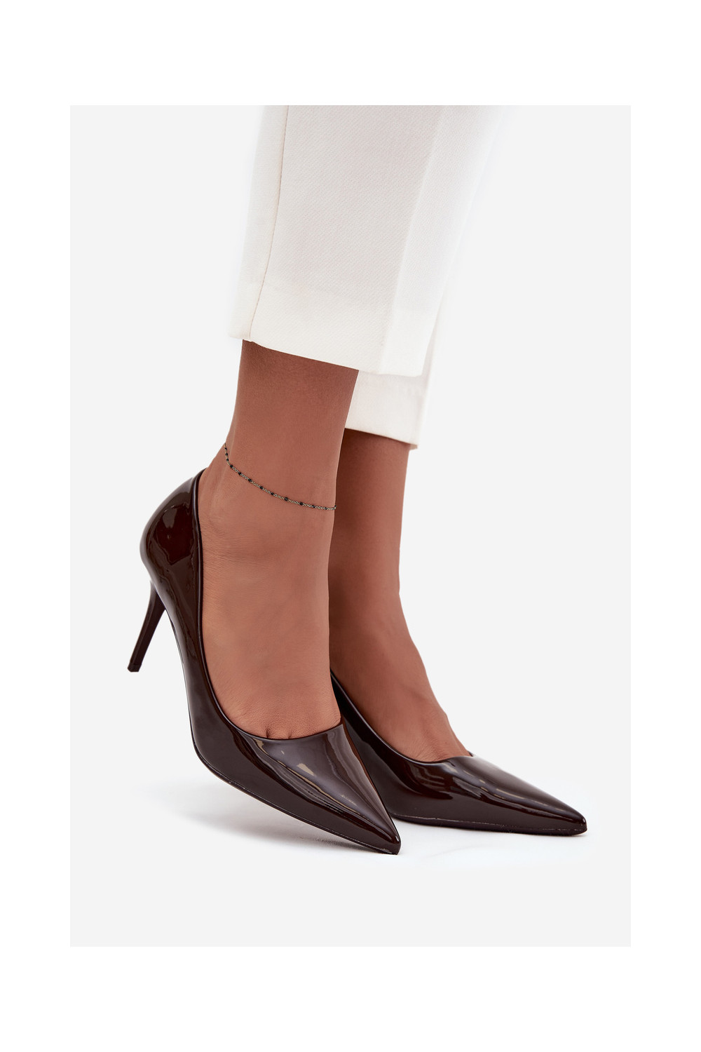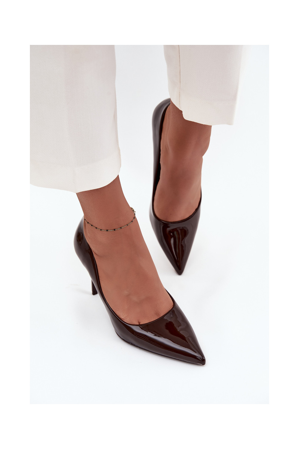 s efektem laku Eko  Boty na vysokém podpatku  Ze Szpiczastymi Noskami Czekoladowe Jadira