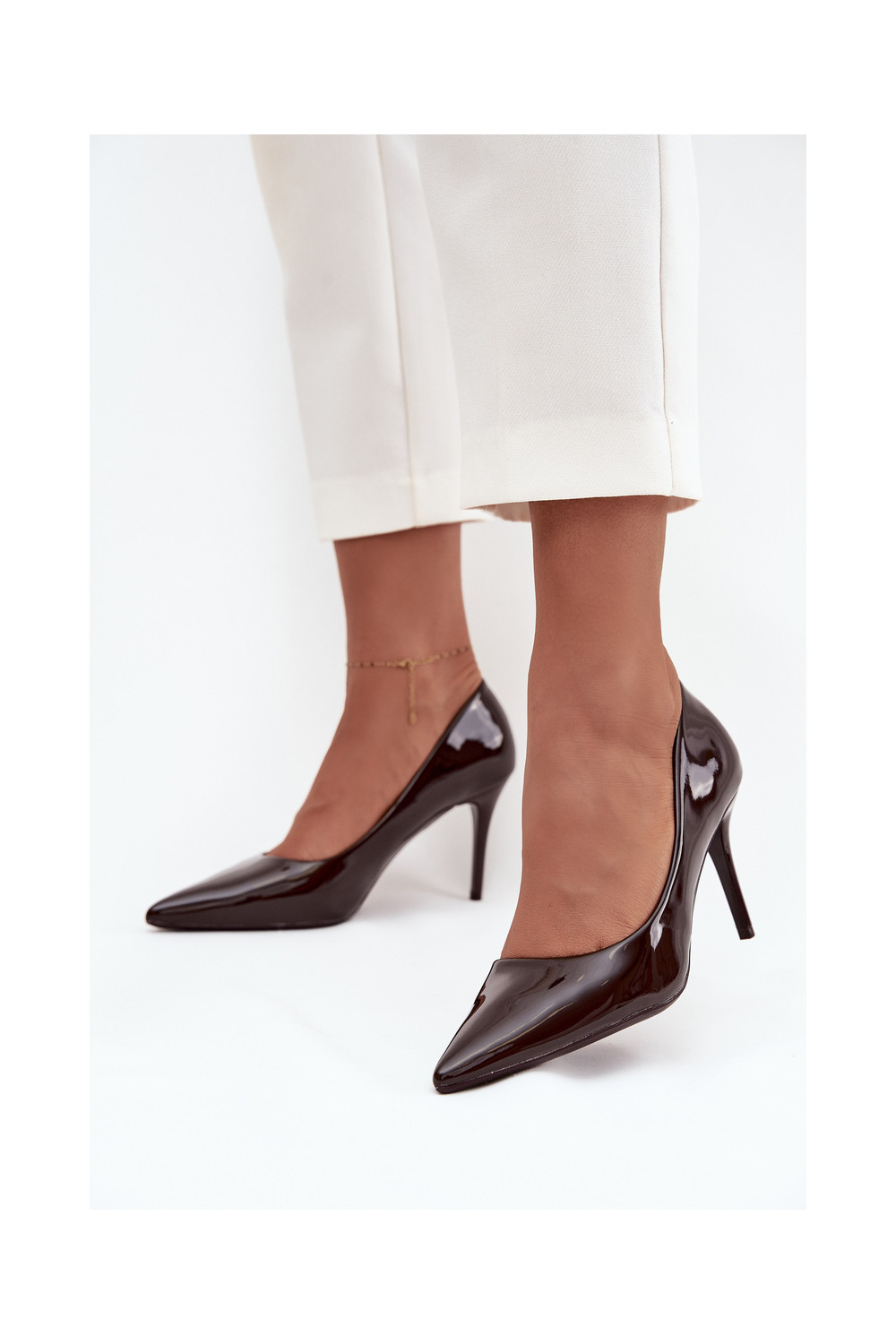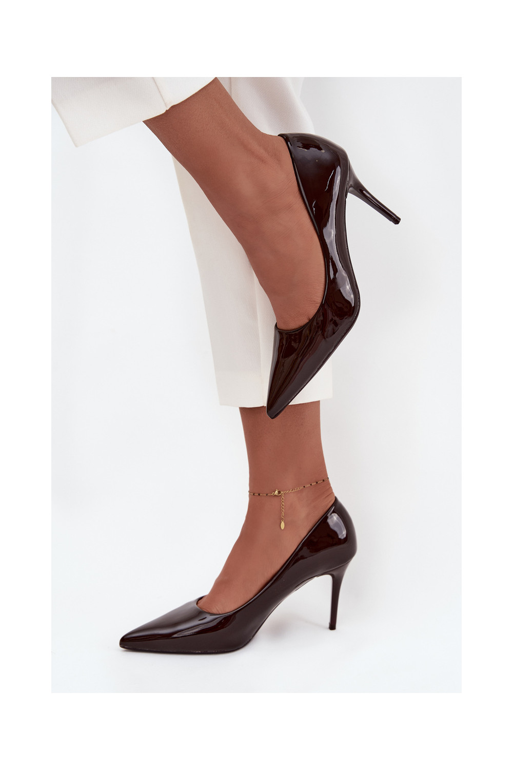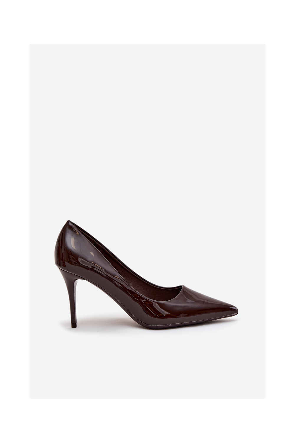 s efektem laku Eko  Boty na vysokém podpatku  Ze Szpiczastymi Noskami Czekoladowe Jadira