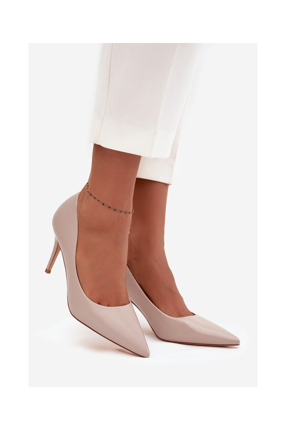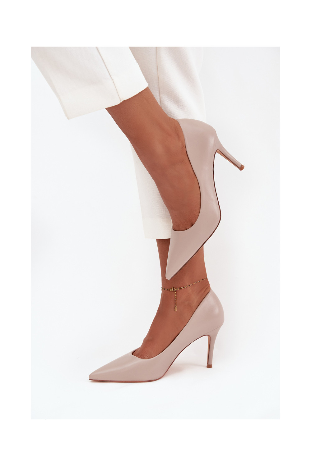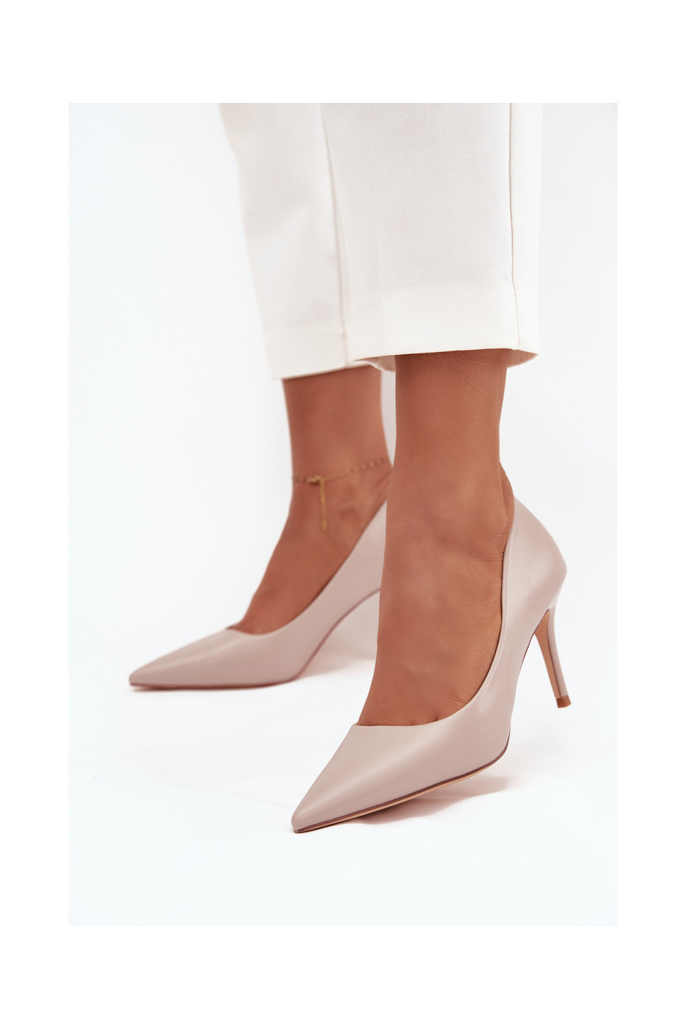 Boty na vysokém podpatku z ekologické kůže béžové Sivana