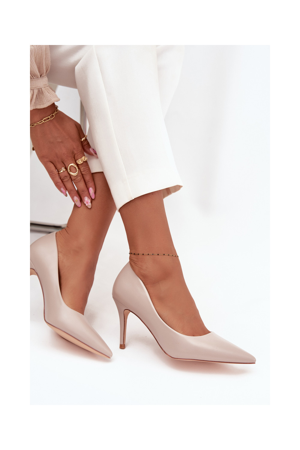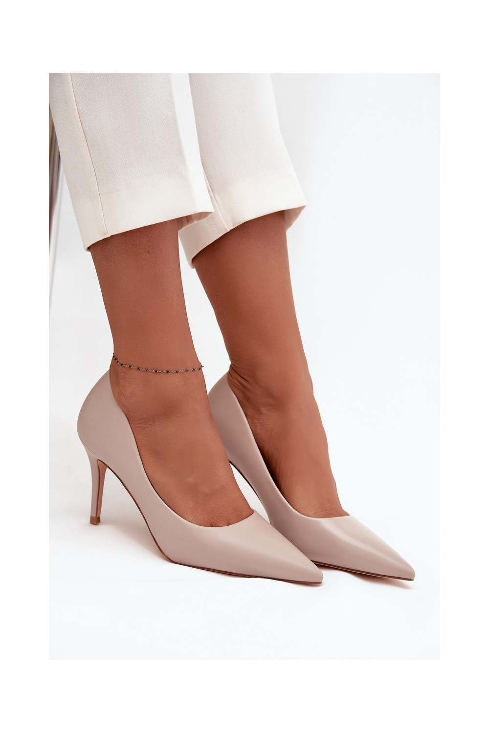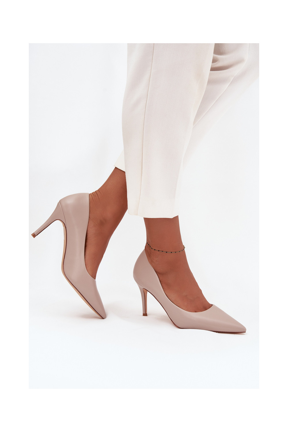 Boty na vysokém podpatku z ekologické kůže béžové Sivana