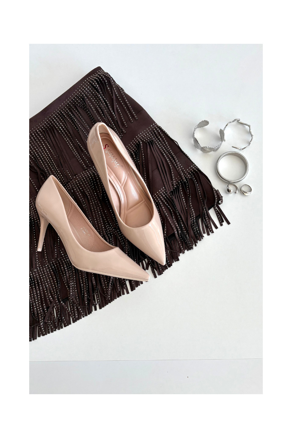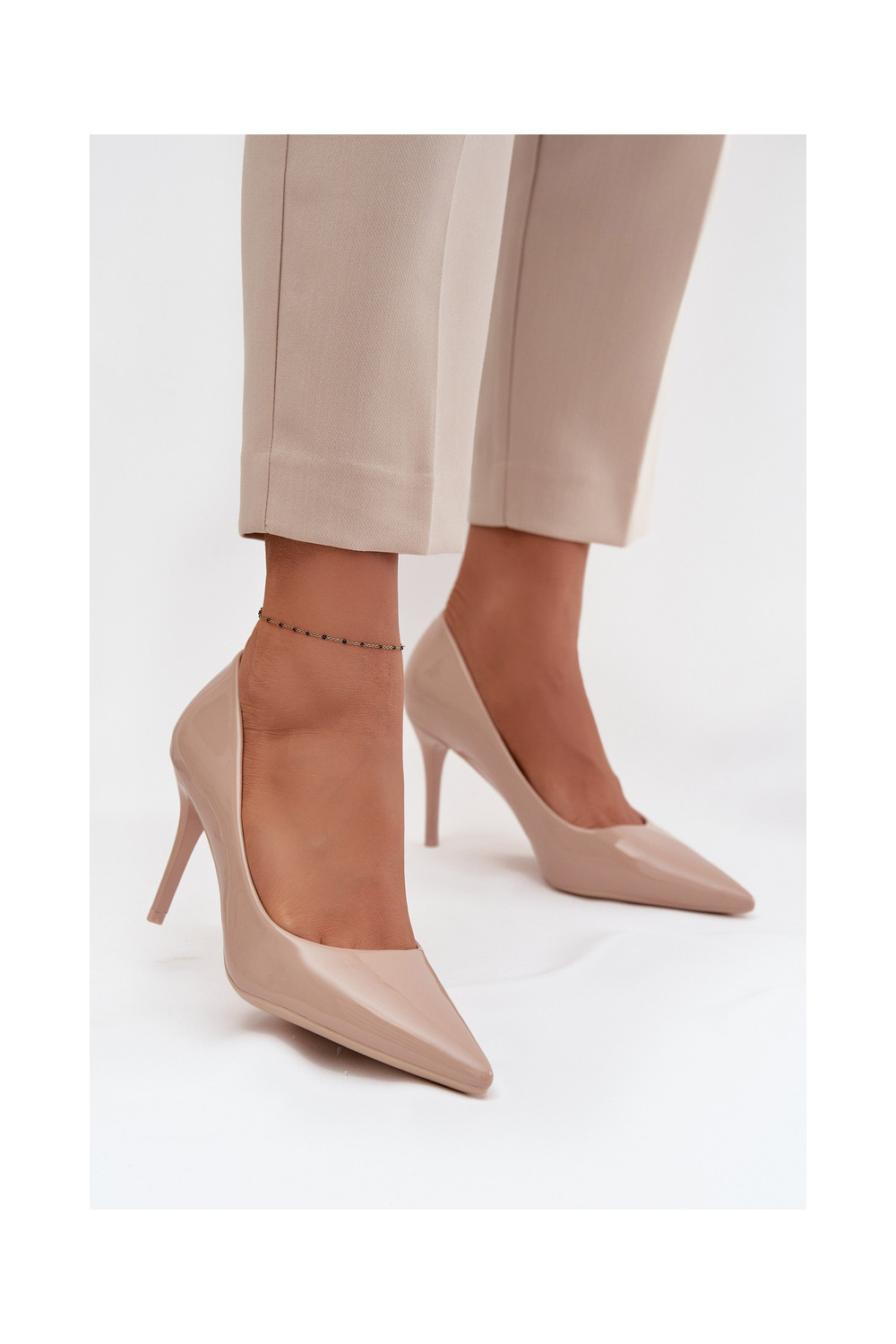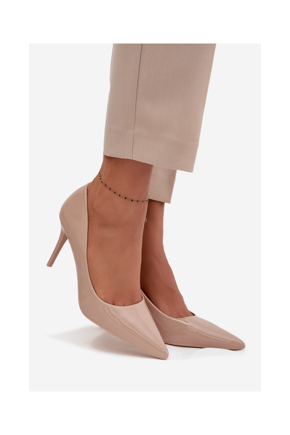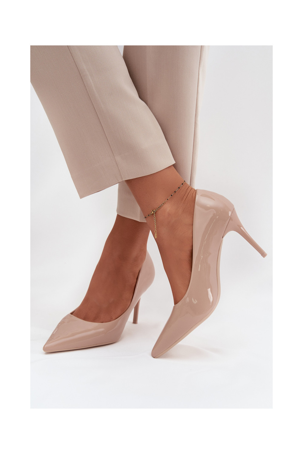 s efektem laku Eko Boty na vysokém podpatku Ze Szpiczastymi Noskami béžové Jadira