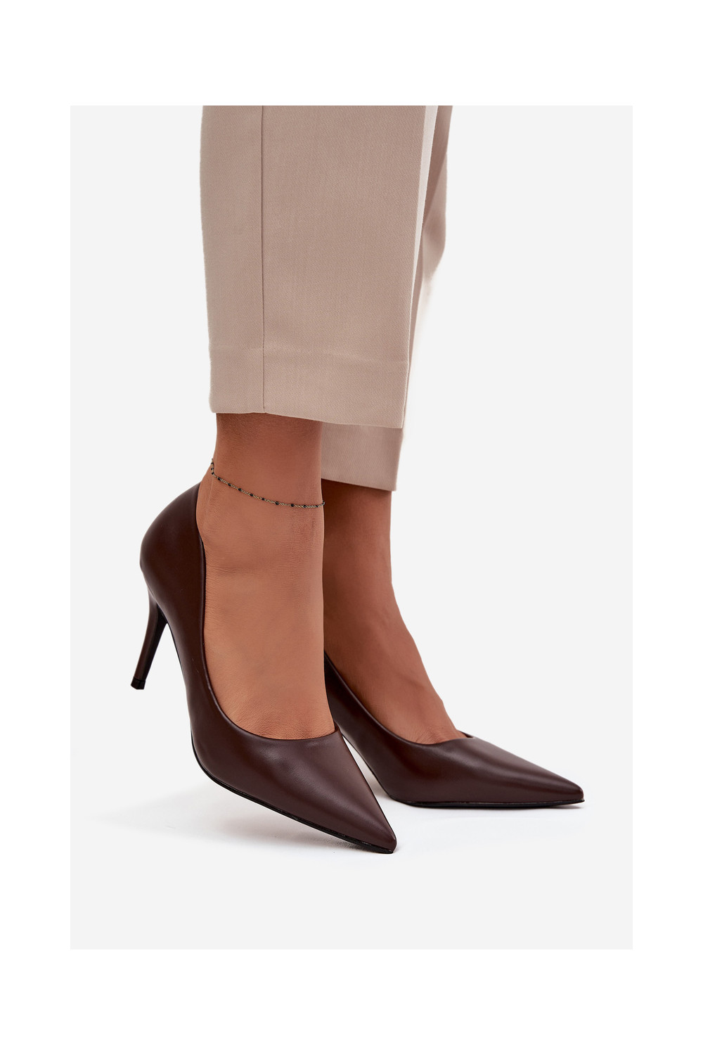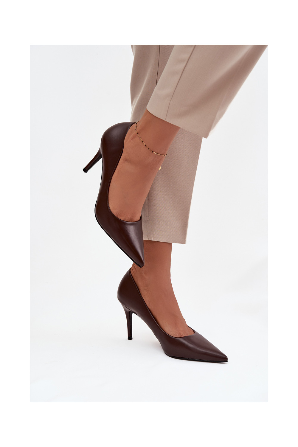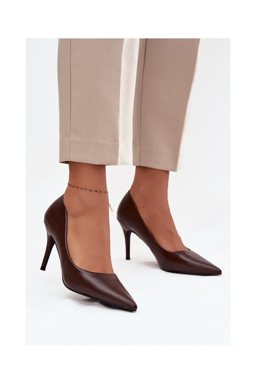 Boty na vysokém podpatku z ekologické kůže Czekoladowe Sivana