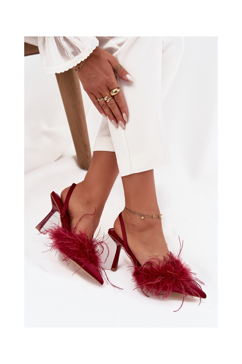 Boty na vysokém podpatku s peřím I Odkrytą Piętą vínová Belice
