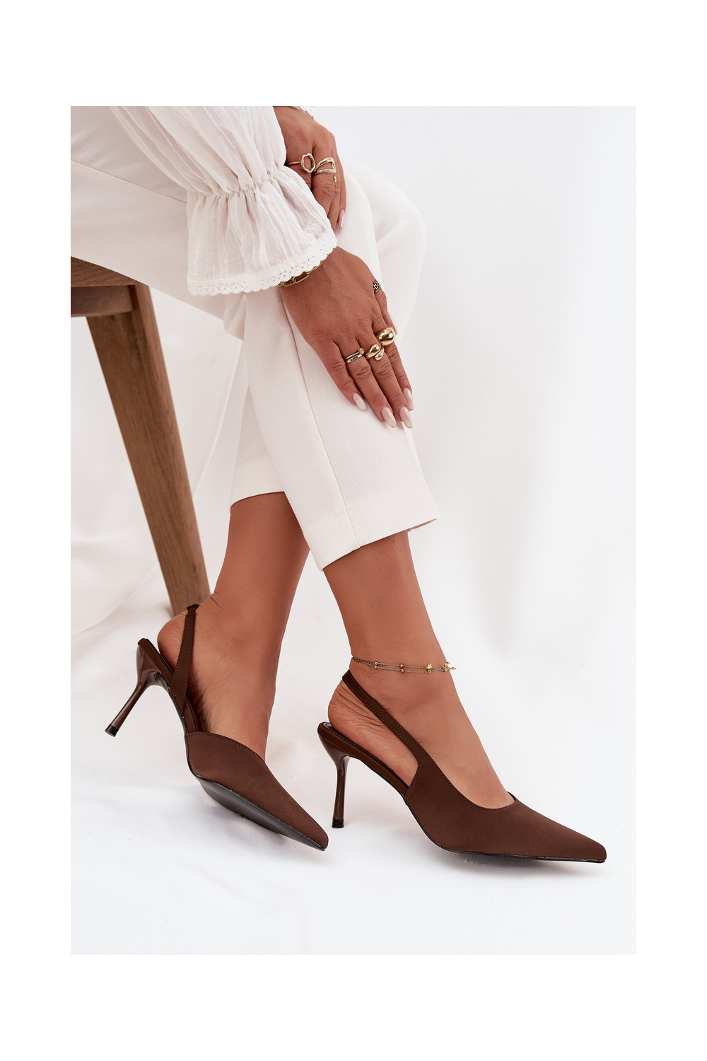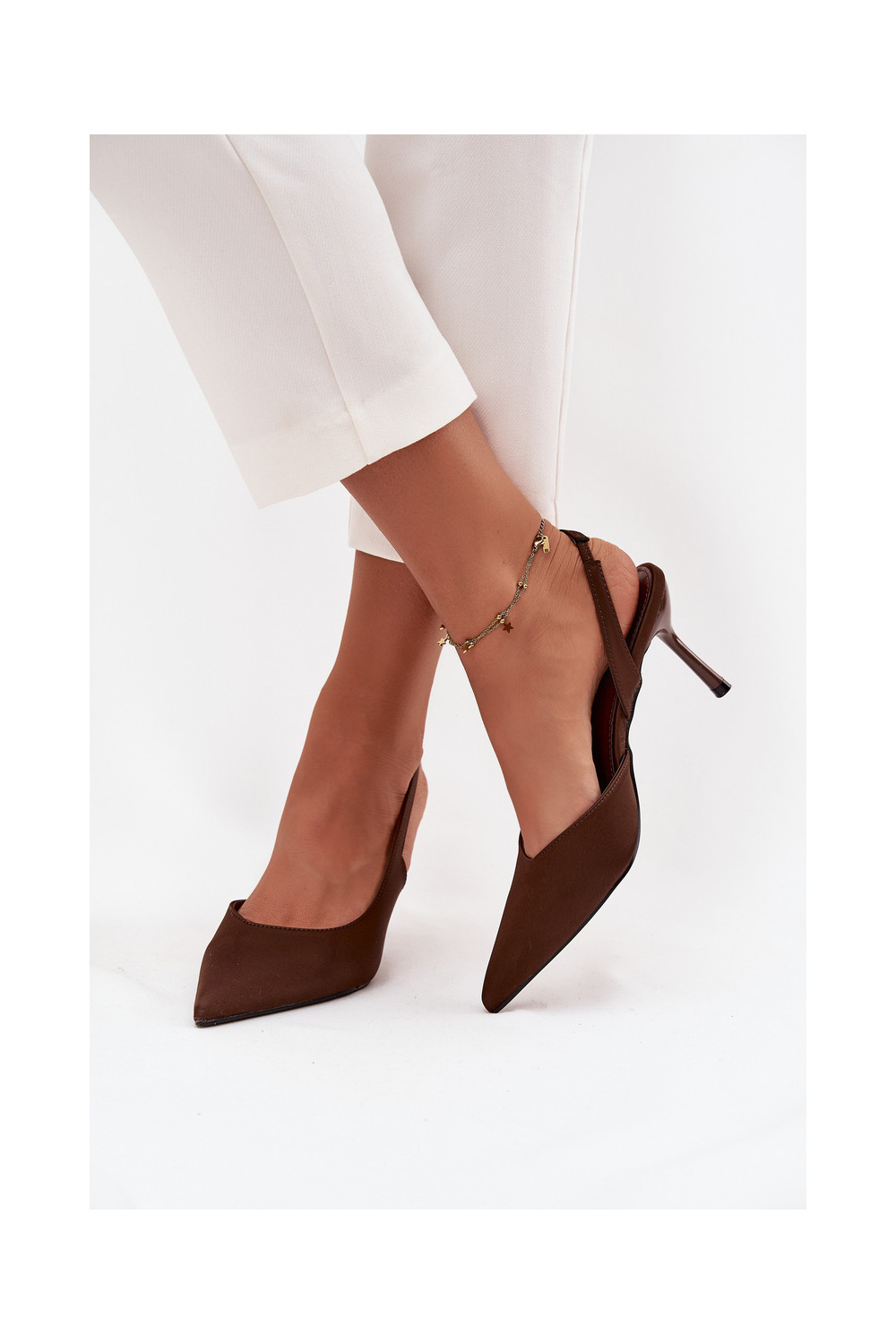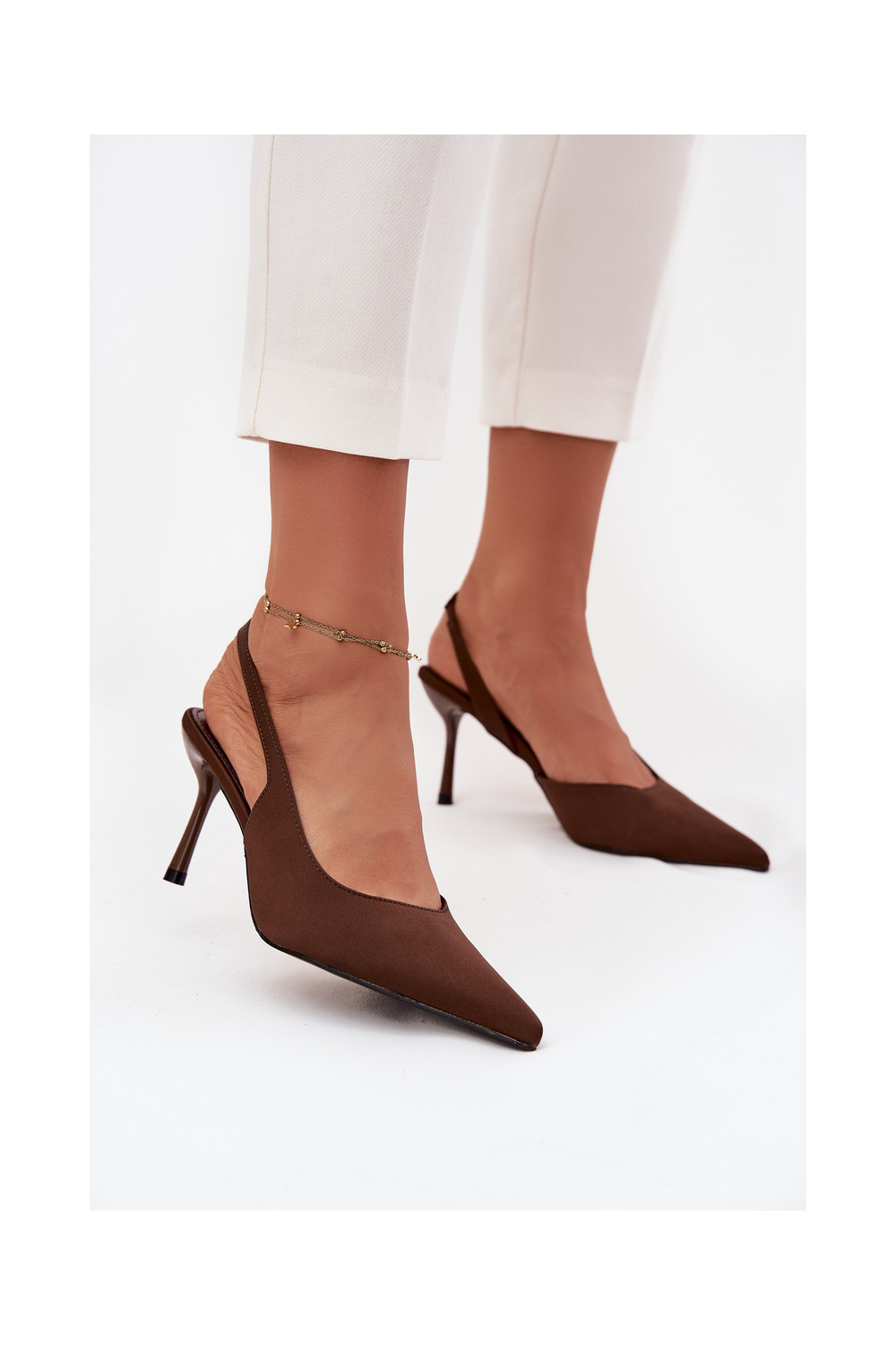 Boty na vysokém podpatku Z Odkrytymi Piętami Czekoladowe Lenira