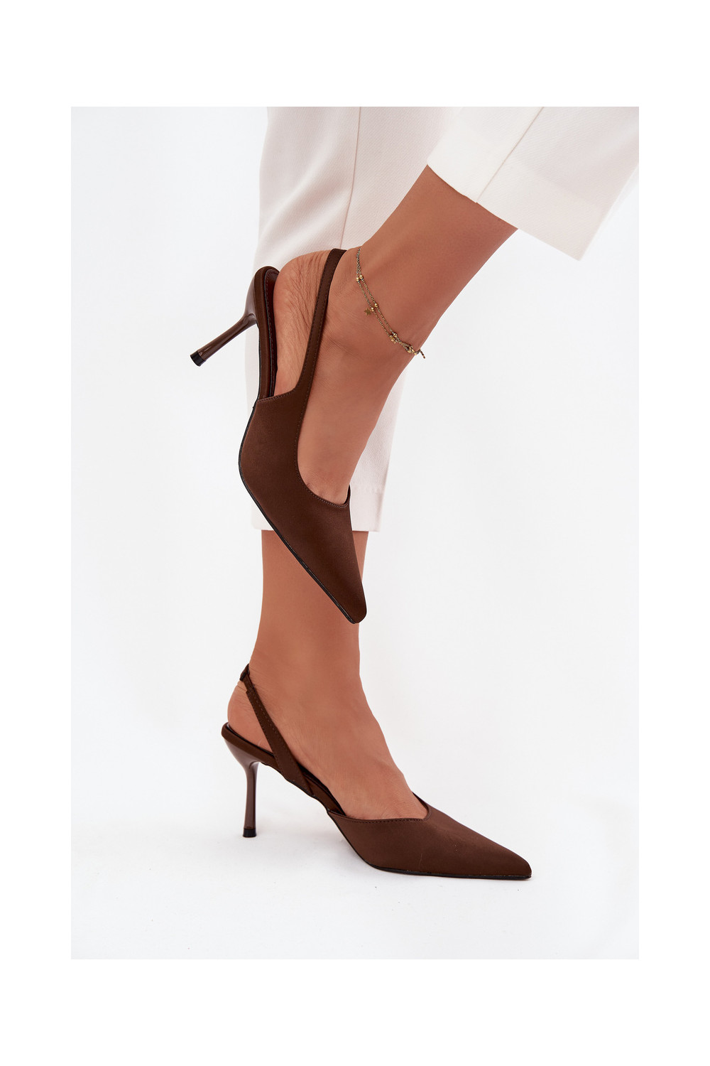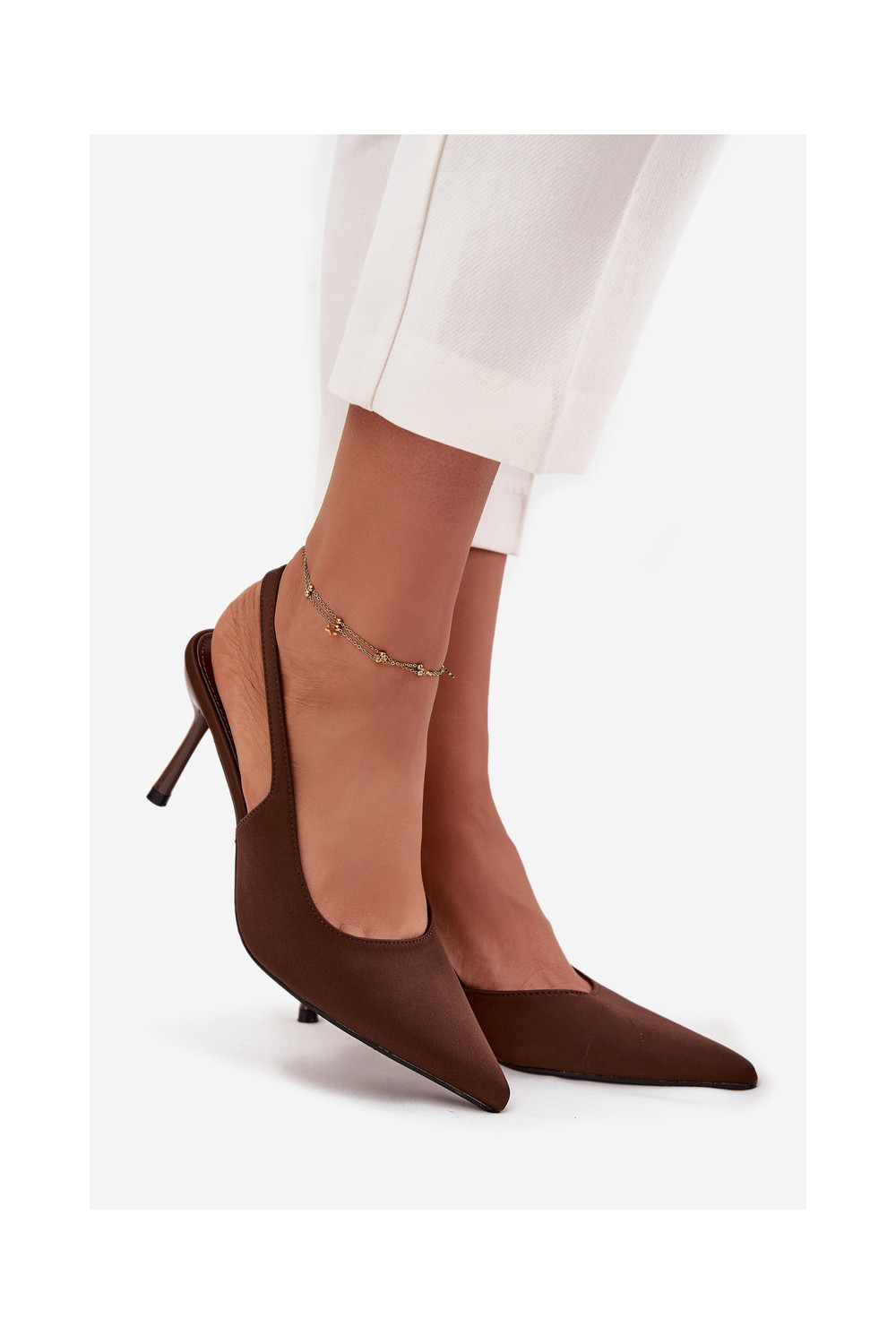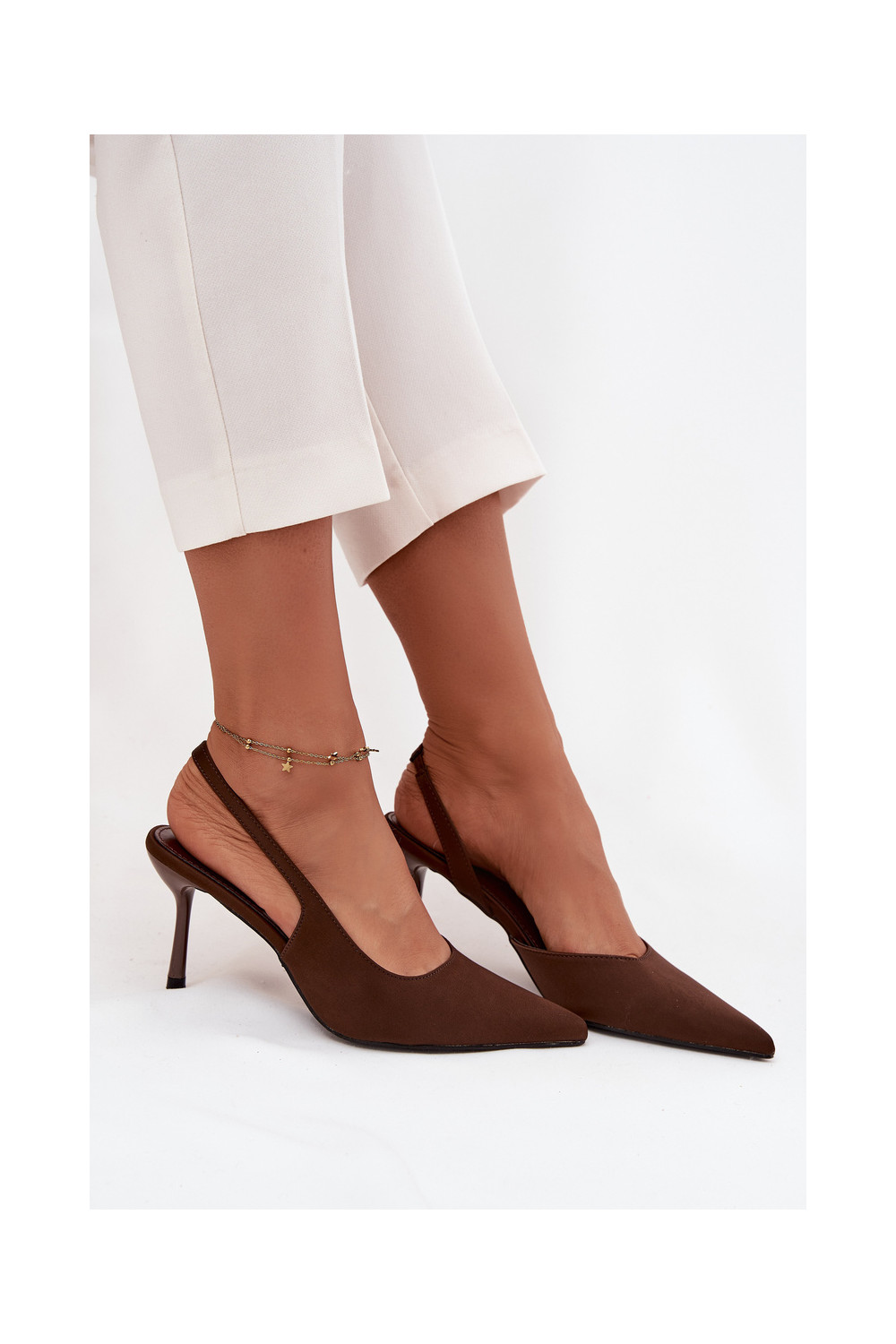 Boty na vysokém podpatku Z Odkrytymi Piętami Czekoladowe Lenira
