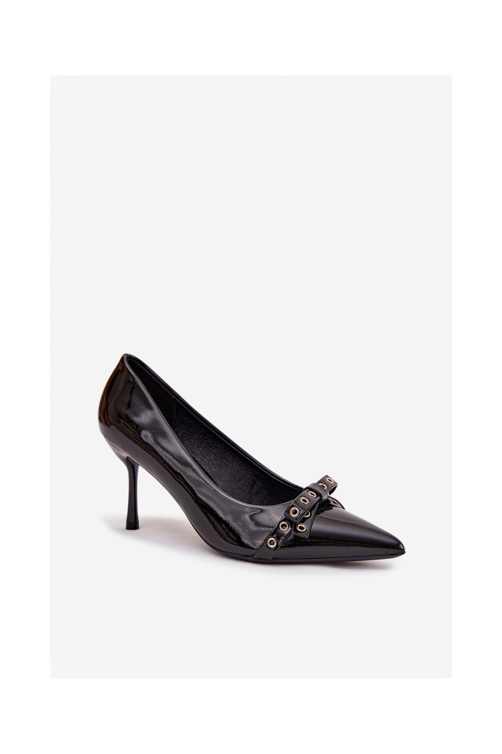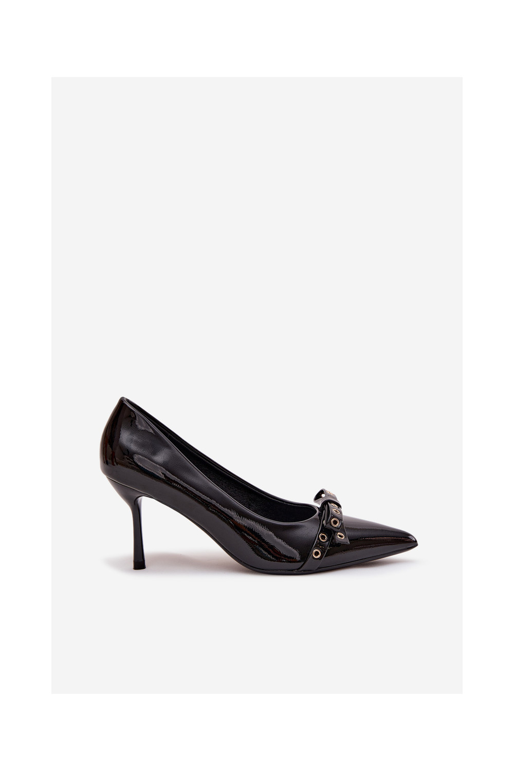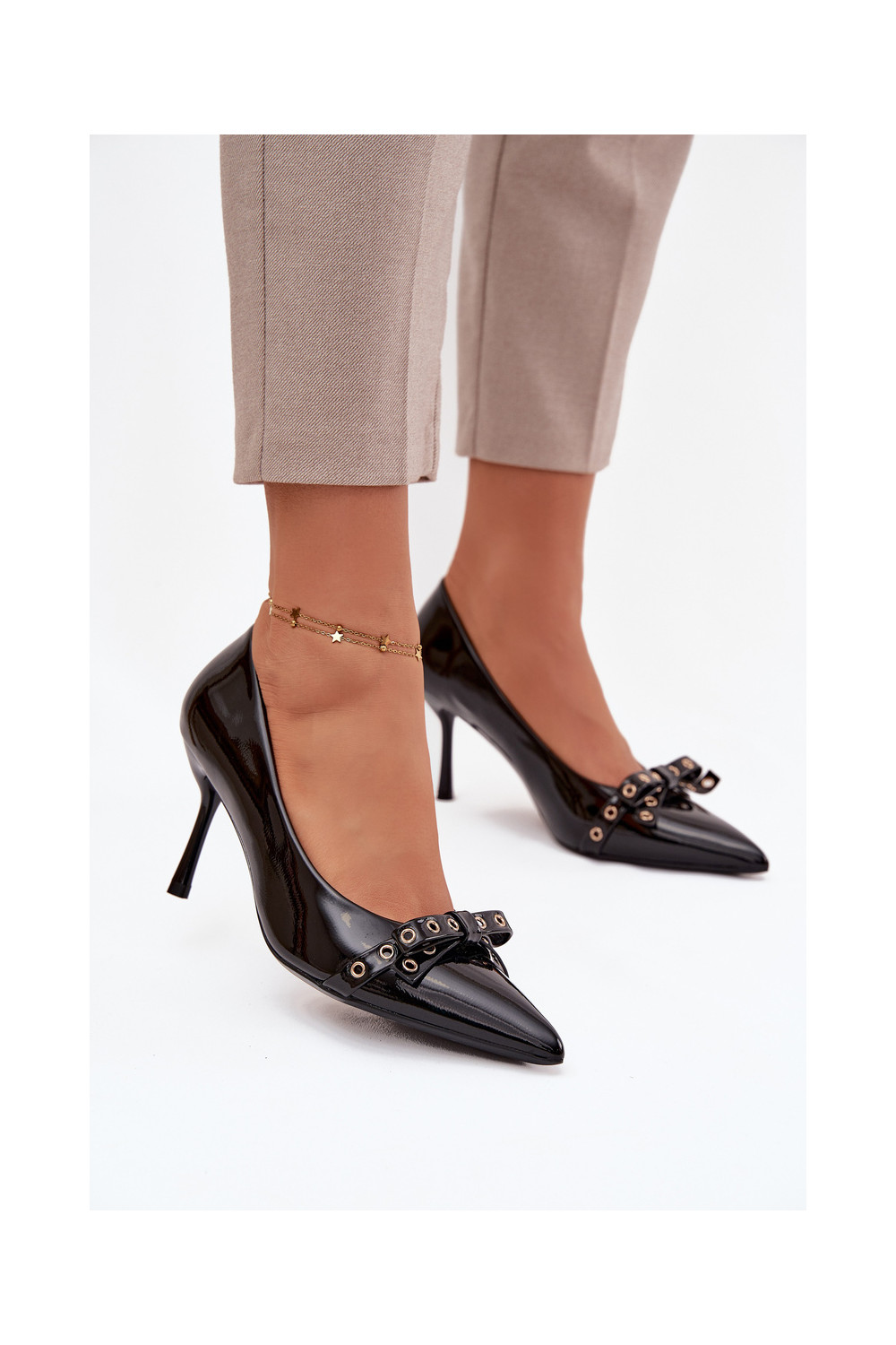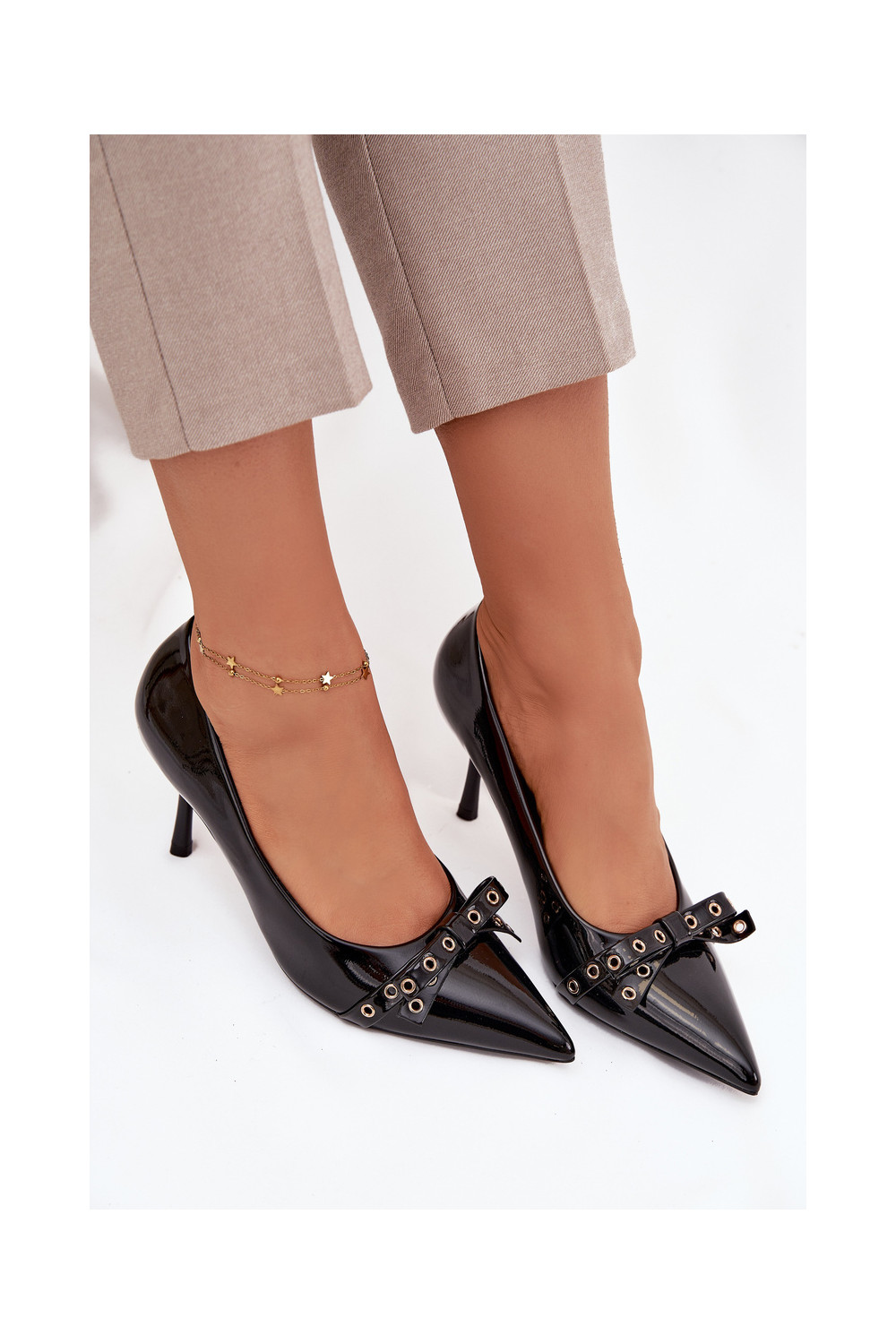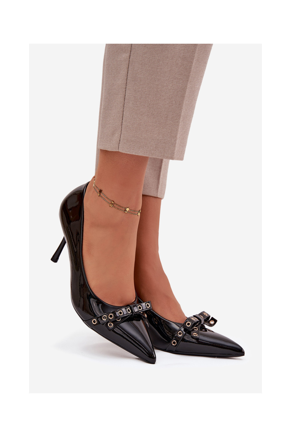 s efektem laku Boty na vysokém podpatku se stuhami Černé Janisse