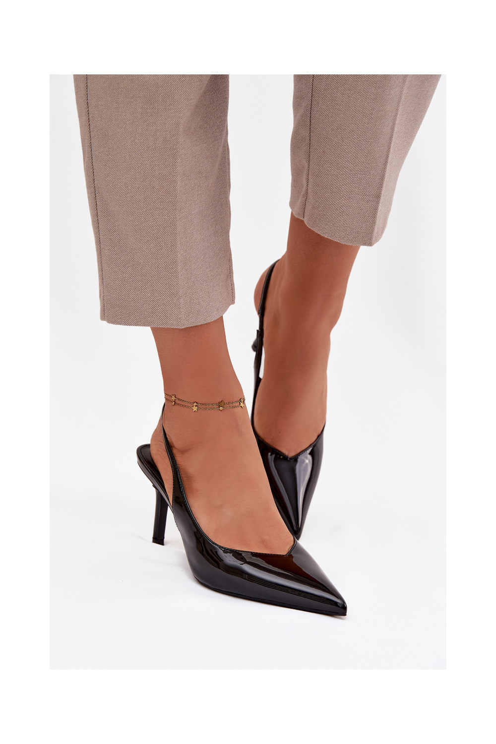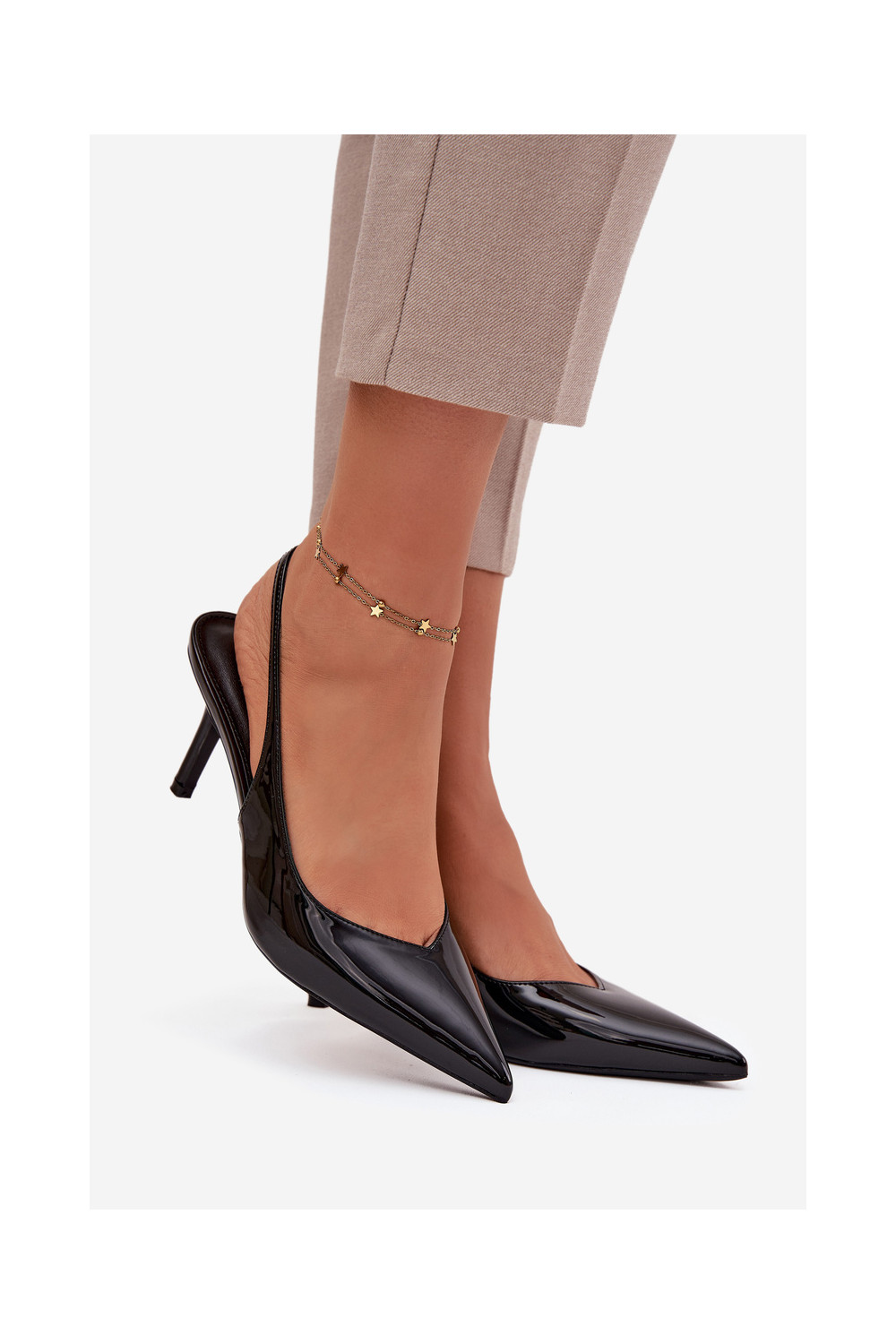 s efektem laku Obuv s tenkými podpatky Černé Phelia