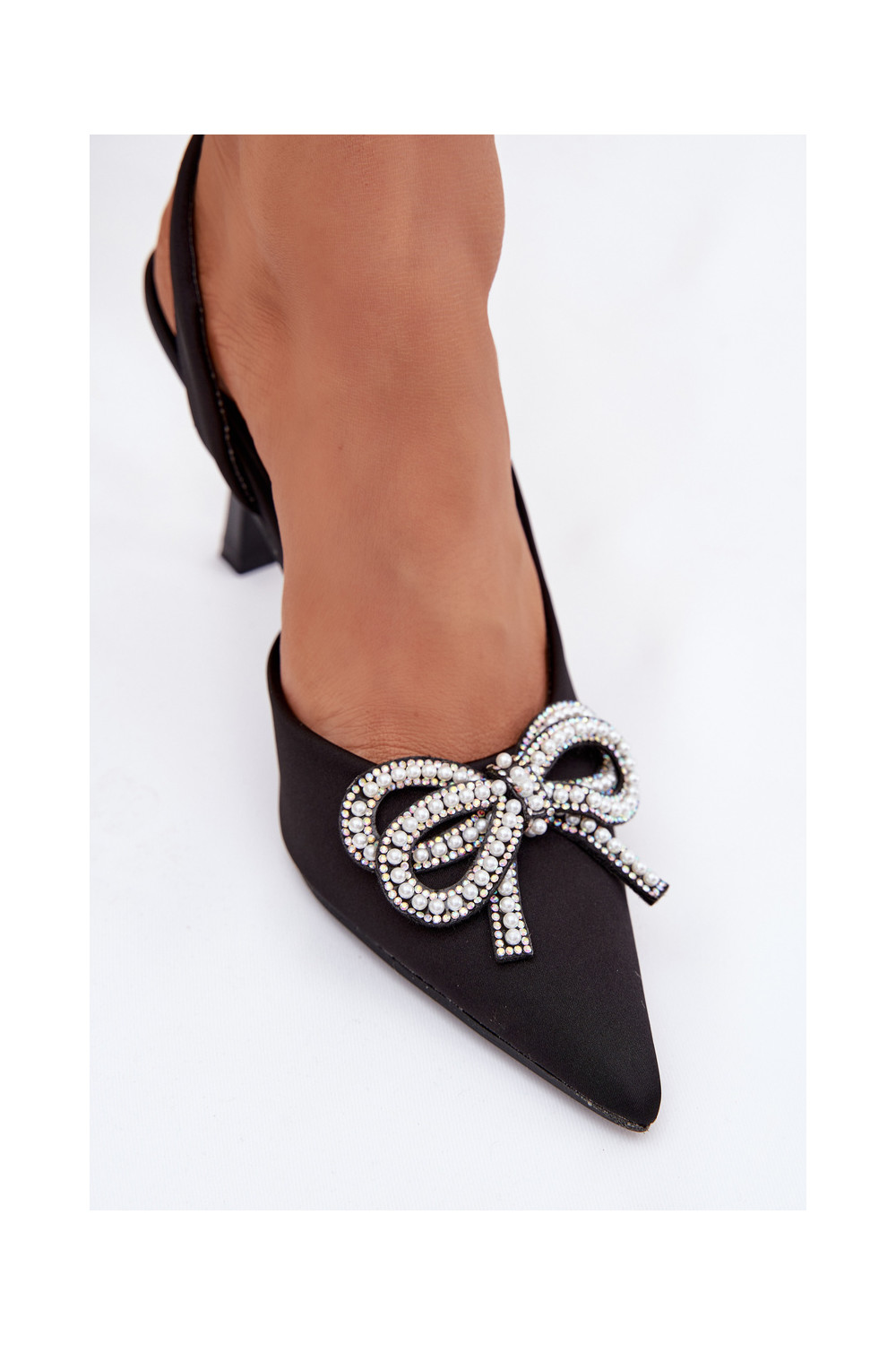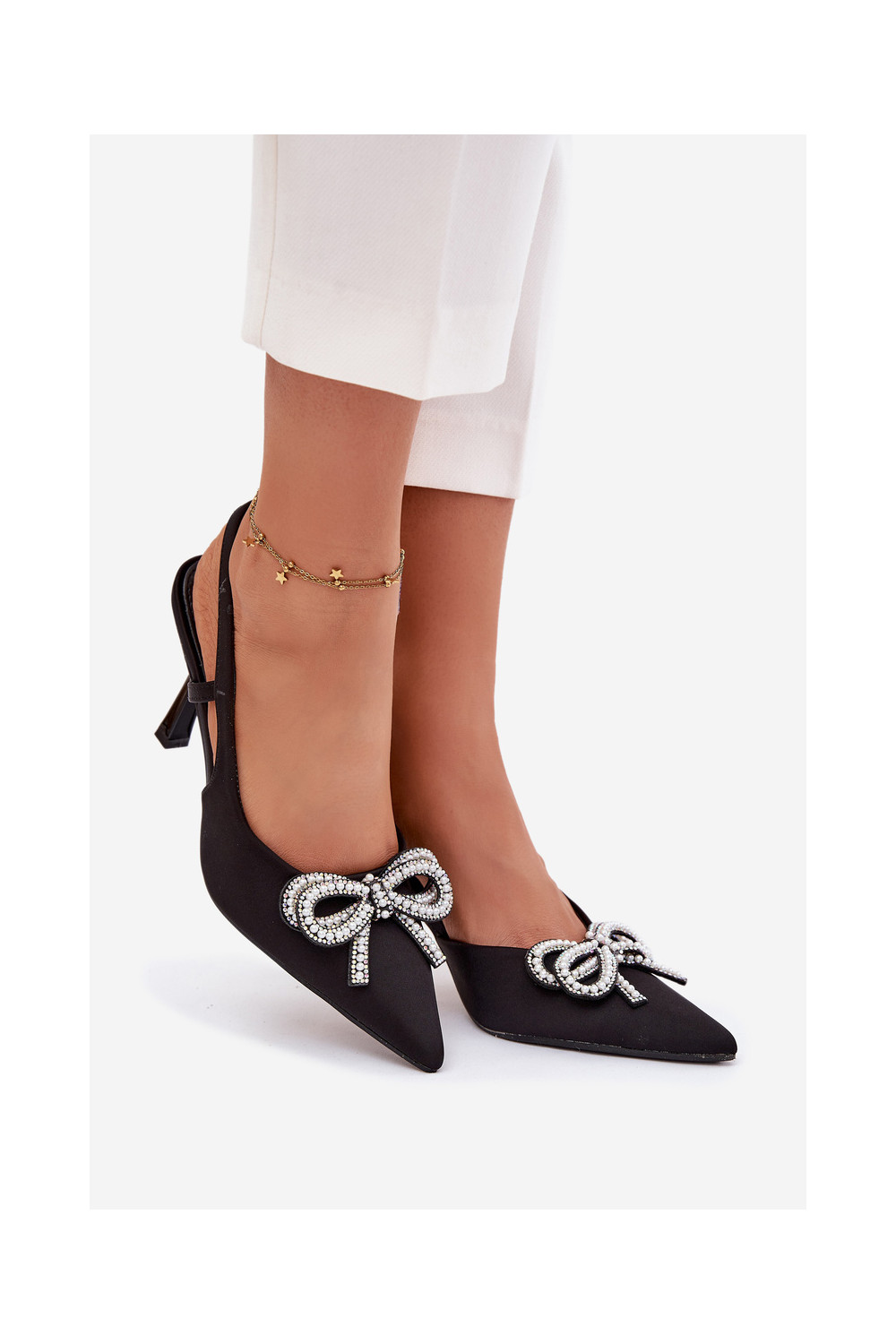 Boty na vysokém podpatku se stuhami I Odkrytą Piętą Černé Derissa