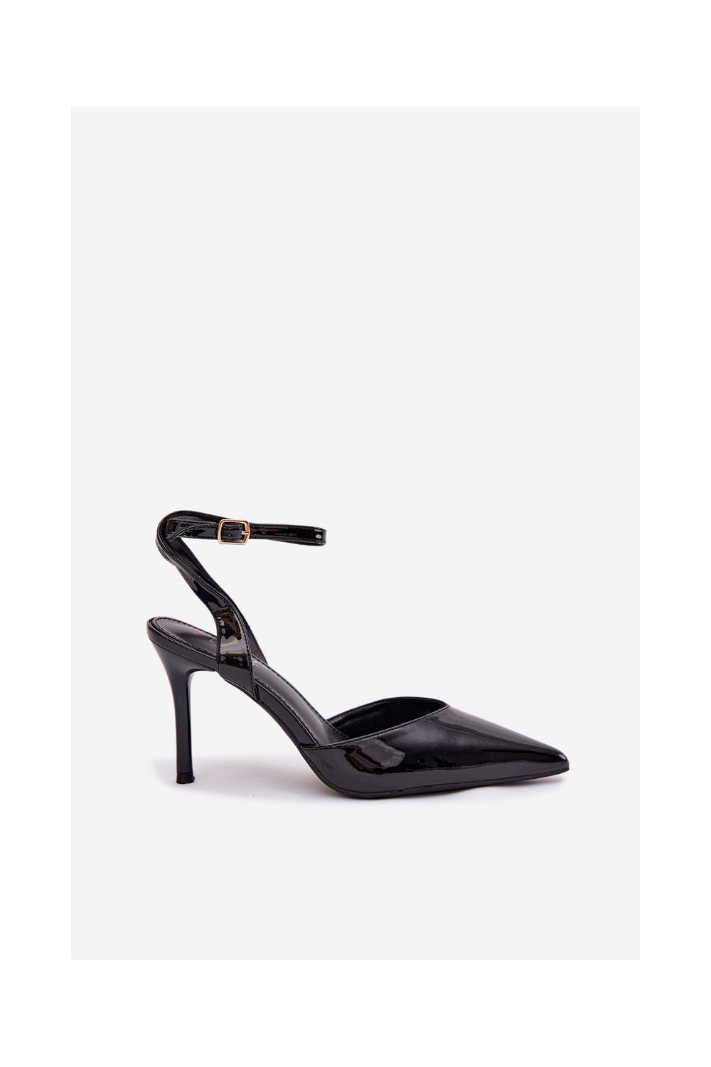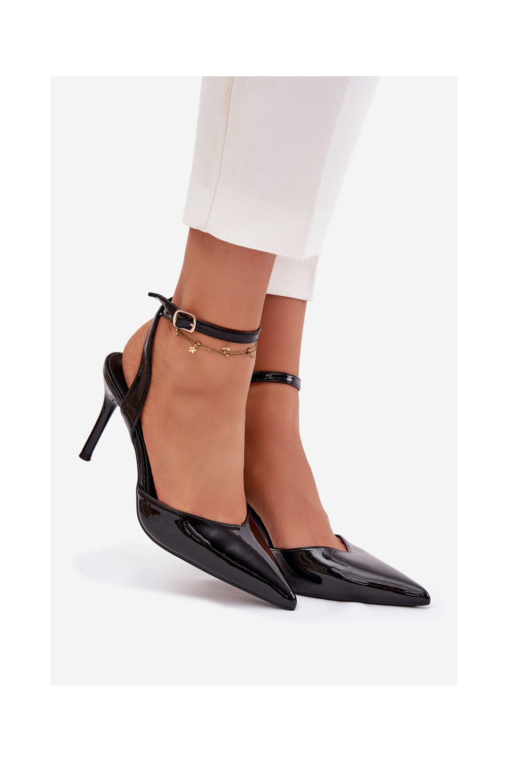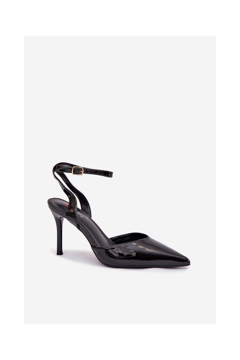 s efektem laku Boty na vysokém podpatku s otevřenou patou Černé Laretta