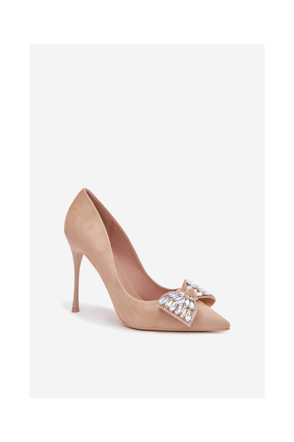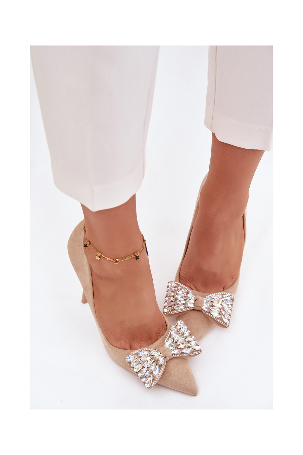 Boty na vysokém podpatku se stuhami I Kryształkami béžové Marivine