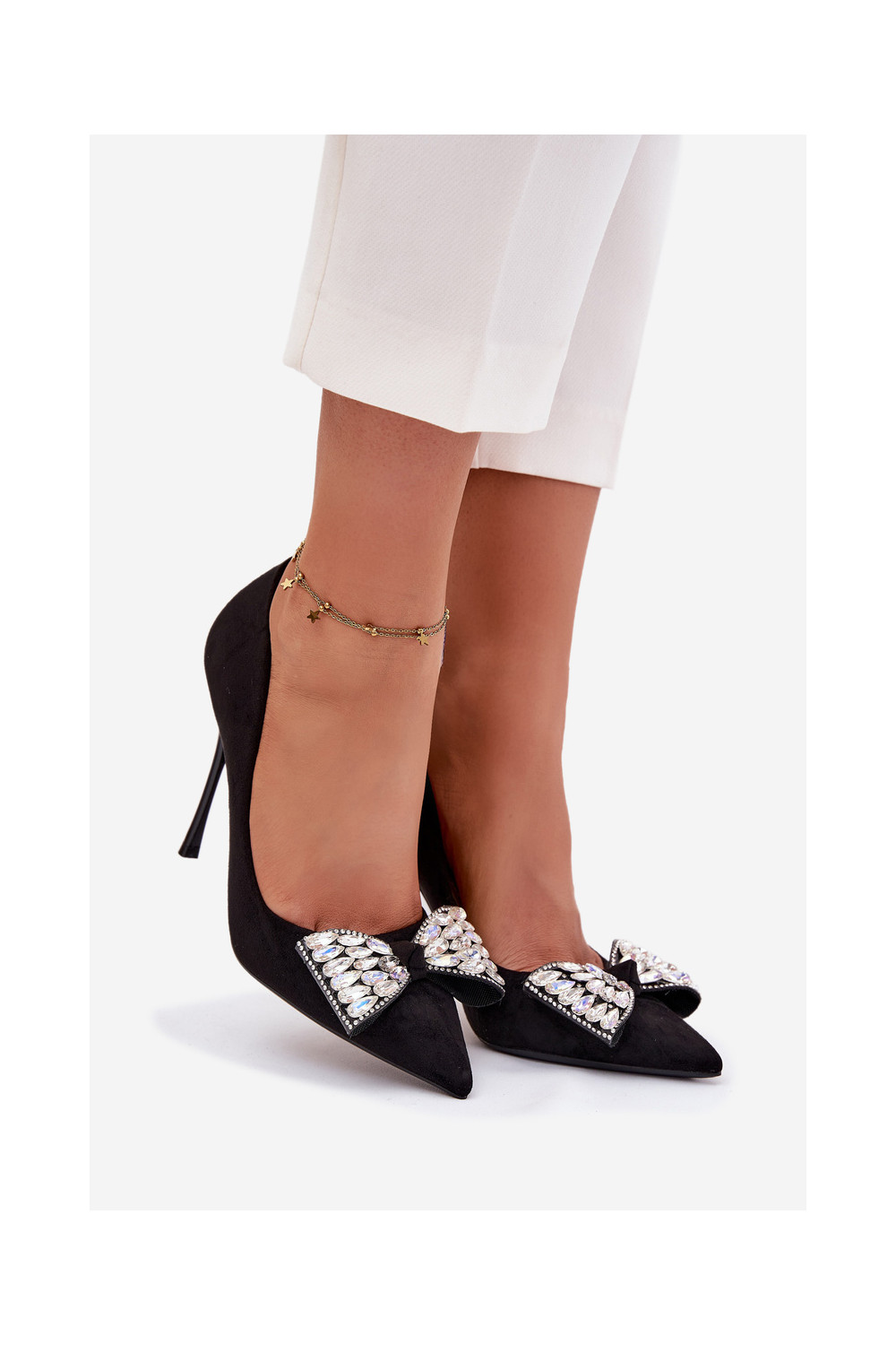 Boty na vysokém podpatku se stuhami I Kryształkami Černé Marivine