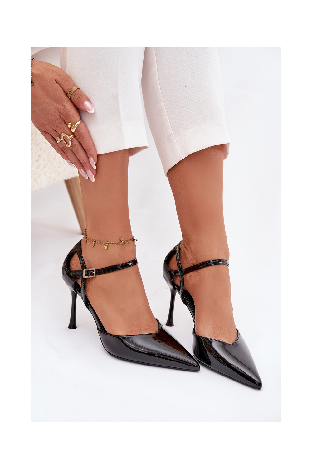 s efektem laku Boty na vysokém podpatku s popruhy Černé Tarilin