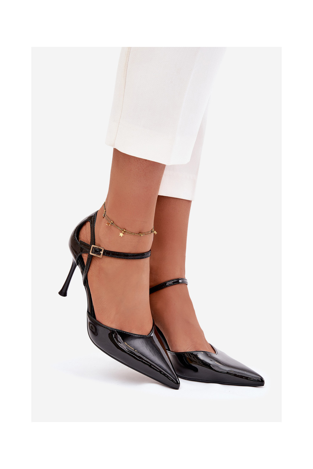 s efektem laku Boty na vysokém podpatku s popruhy Černé Tarilin