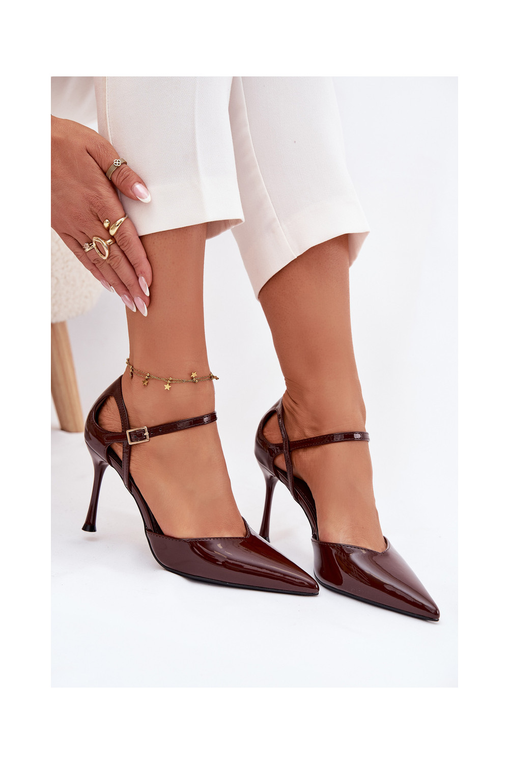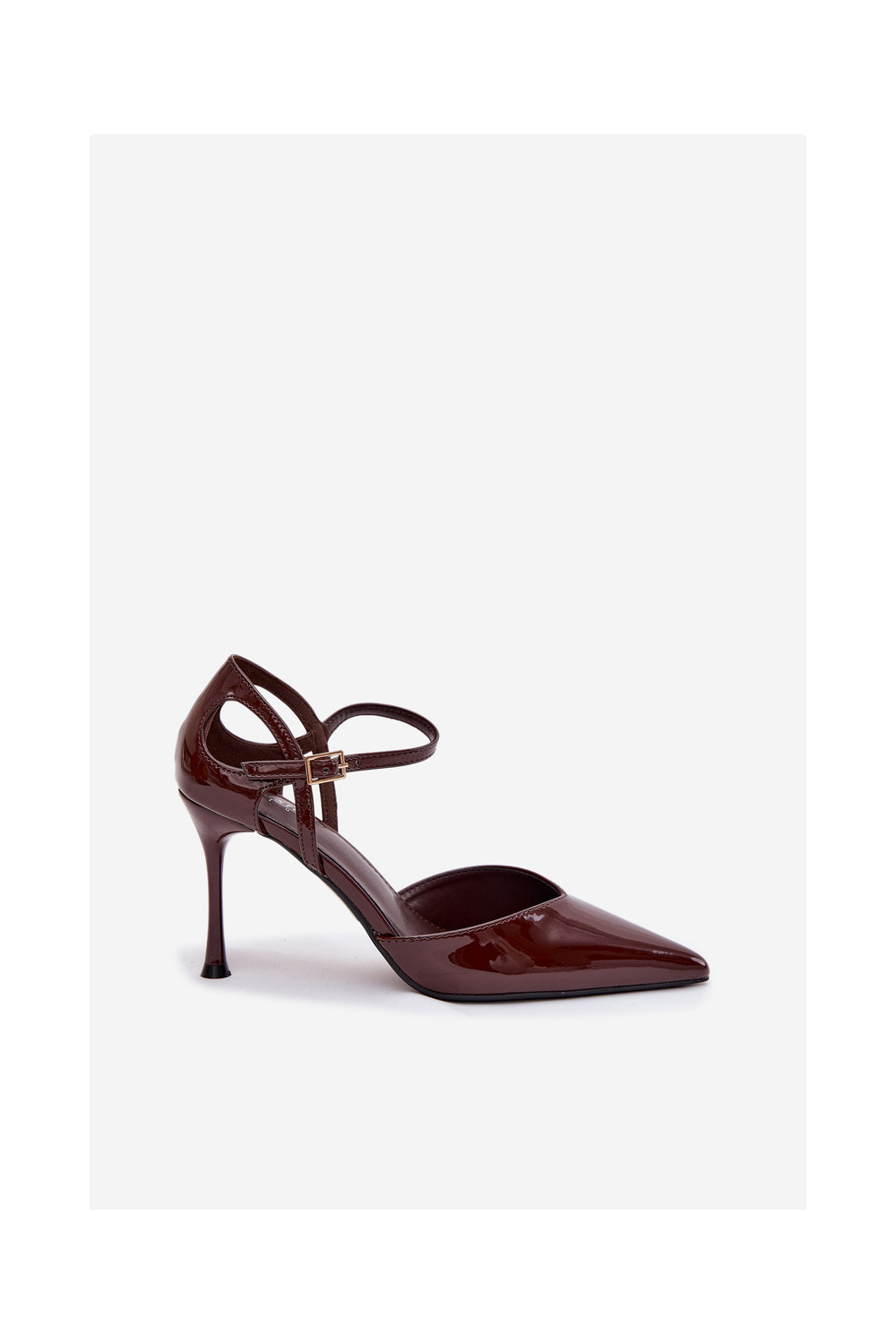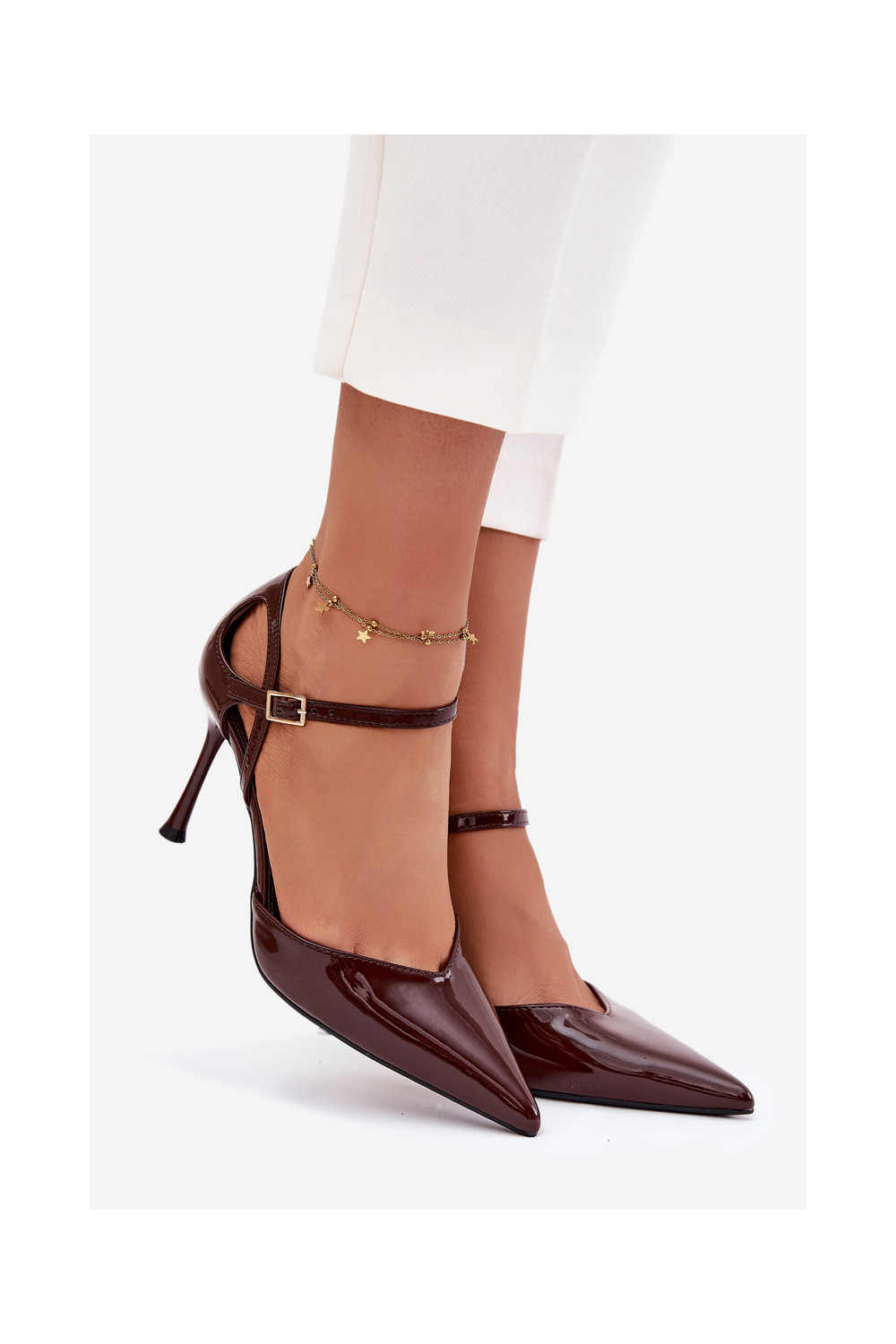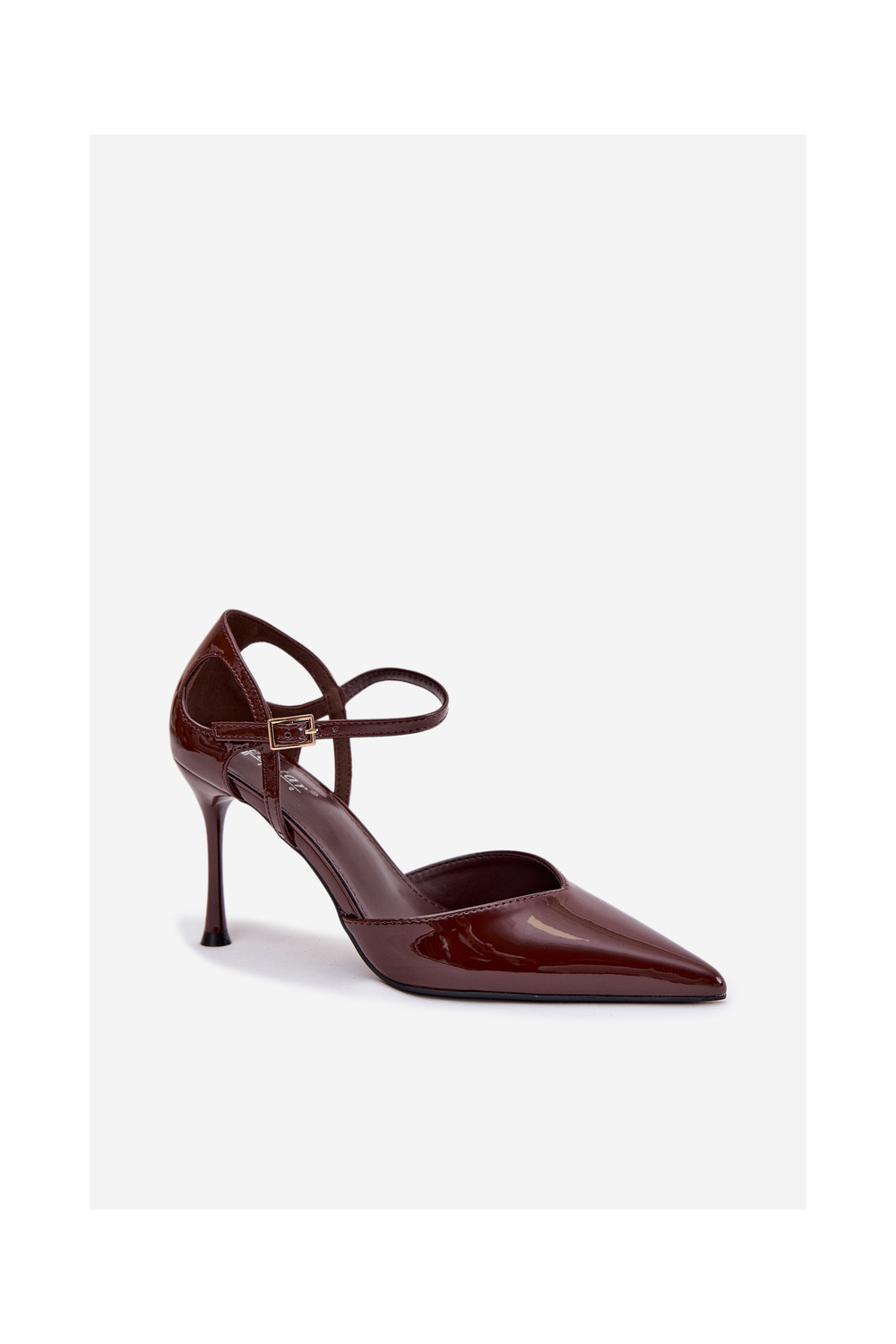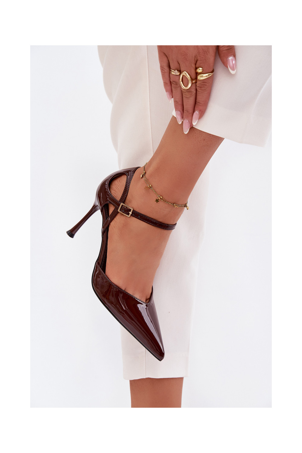 s efektem laku Boty na vysokém podpatku s popruhy Czekoladowe Tarilin