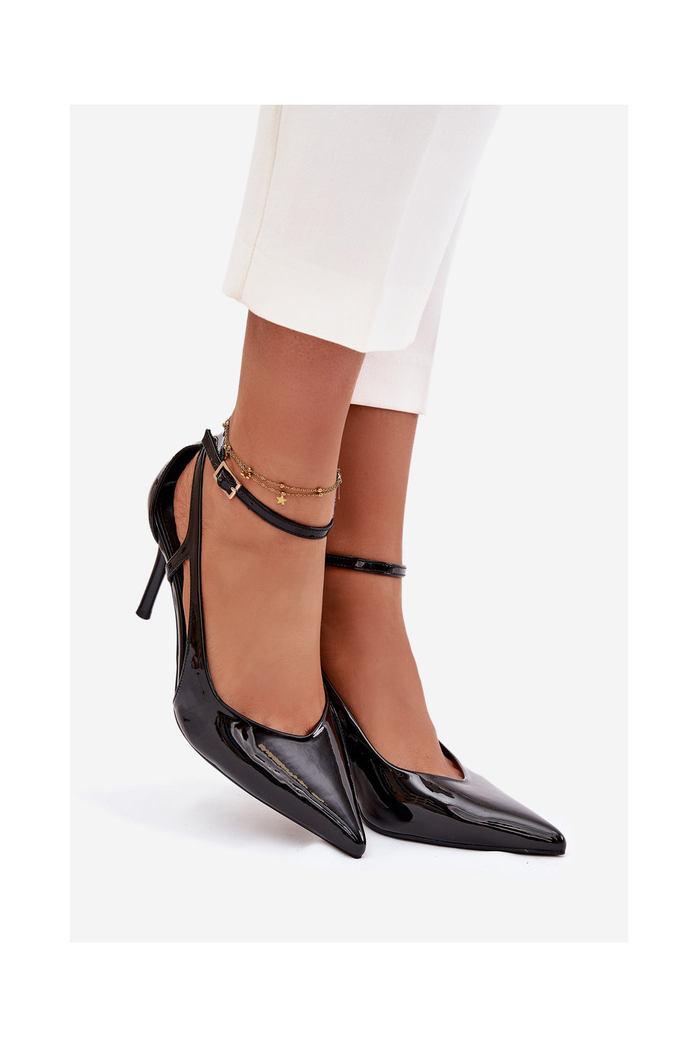 s efektem laku Boty na vysokém podpatku z ekologické kůže Černé Fionnel