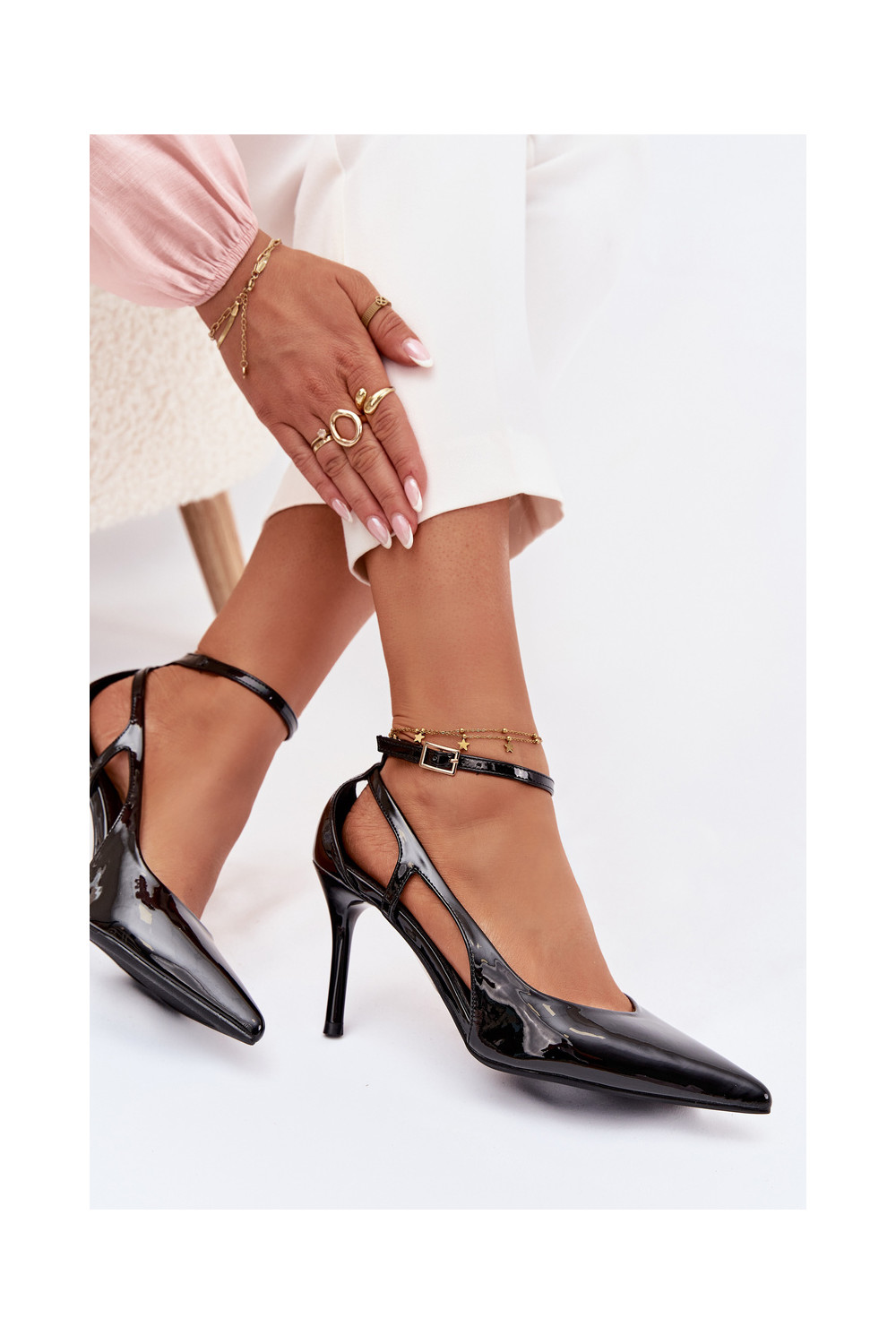 s efektem laku Boty na vysokém podpatku z ekologické kůže Černé Fionnel