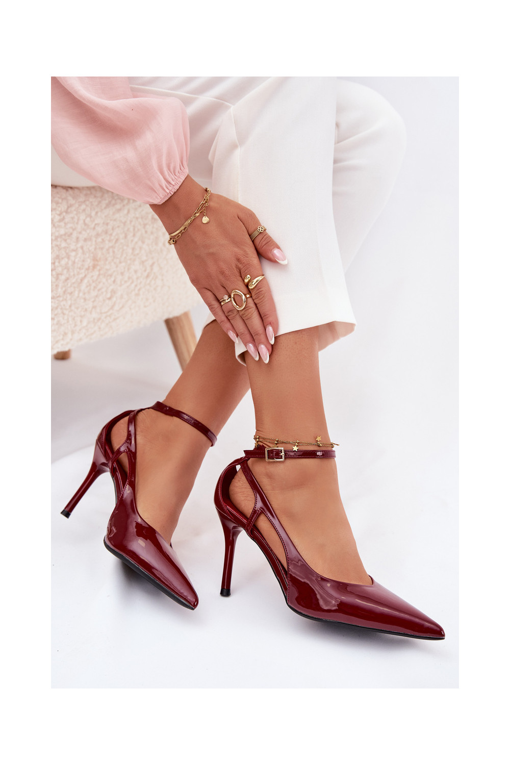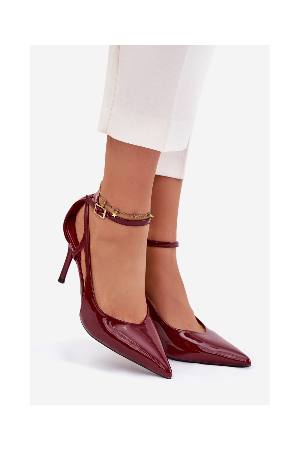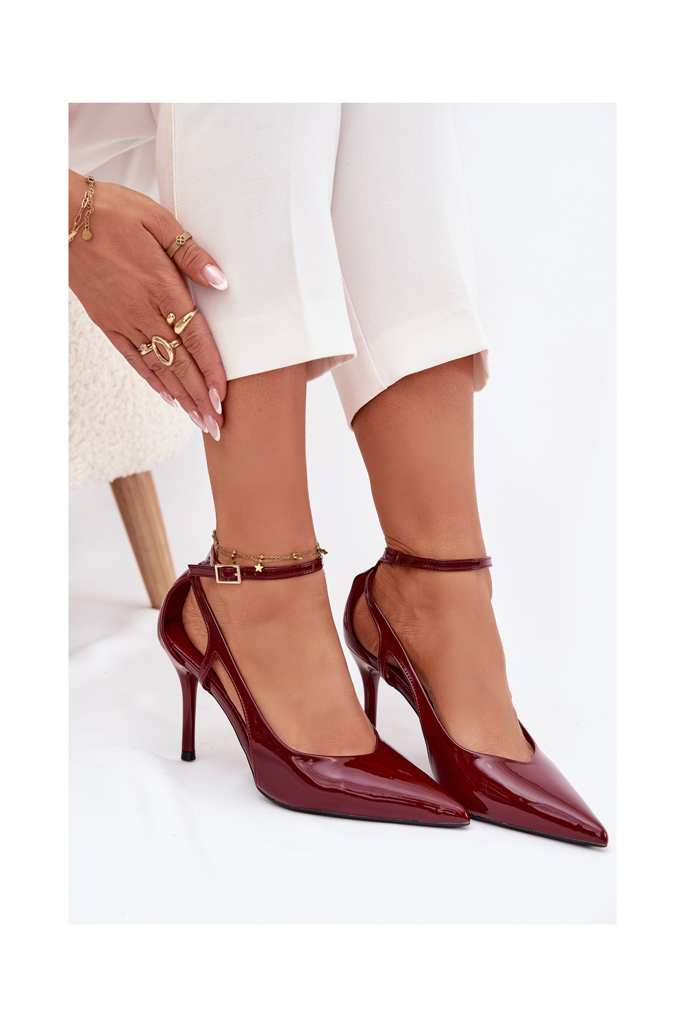 s efektem laku Boty na vysokém podpatku z ekologické kůže vínová Fionnel