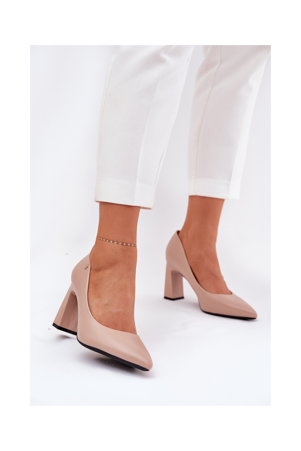 Elegantní styl Obuv Na Słupkowym Obcasie Vinceza 62221 béžové