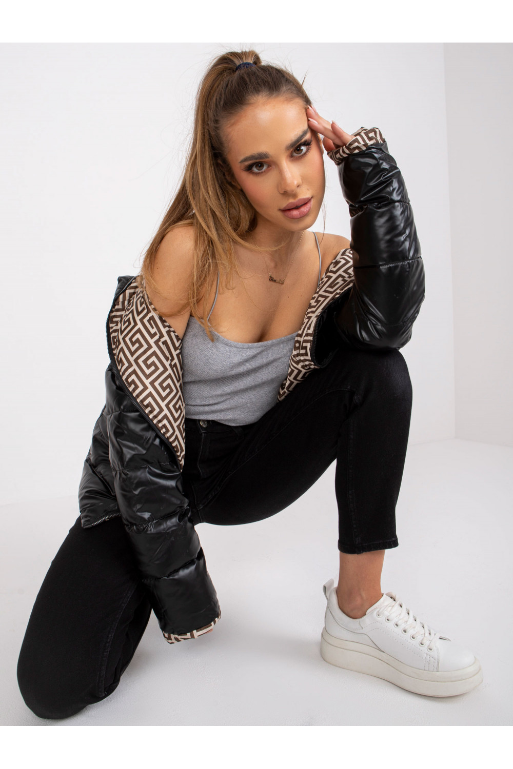 Černá oboustranná bunda s kapucí Arta. Složení materiálu: 100% polyester způsob praní: praní v pračce na 30°C Kód produktu: YP-KR-CX4290.99p dominantní vzor: bez vzoru Styl: ležérní Příležitost: ležérní, do práce, do města Modelka má na sobě si