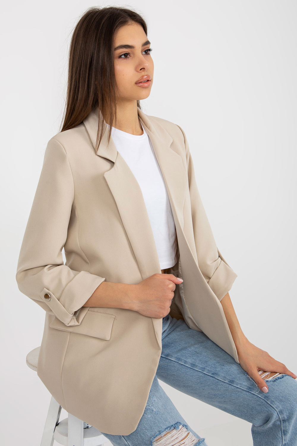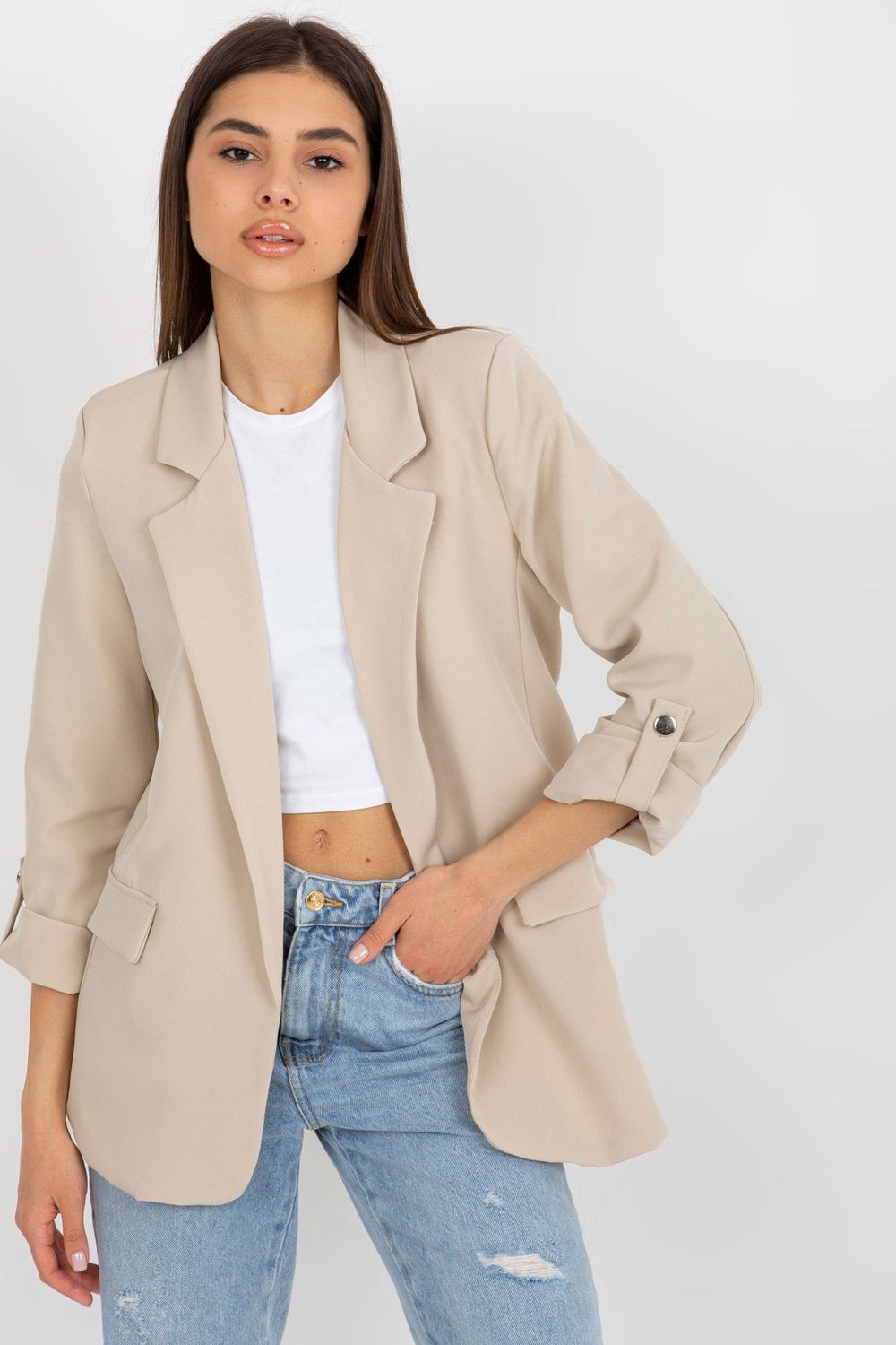 Světle béžová dámská bunda bez zapínání OCH BELLA.