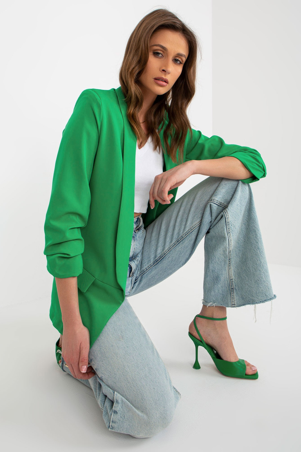Zelená dámská bunda s volánkovým rukávem Adela.