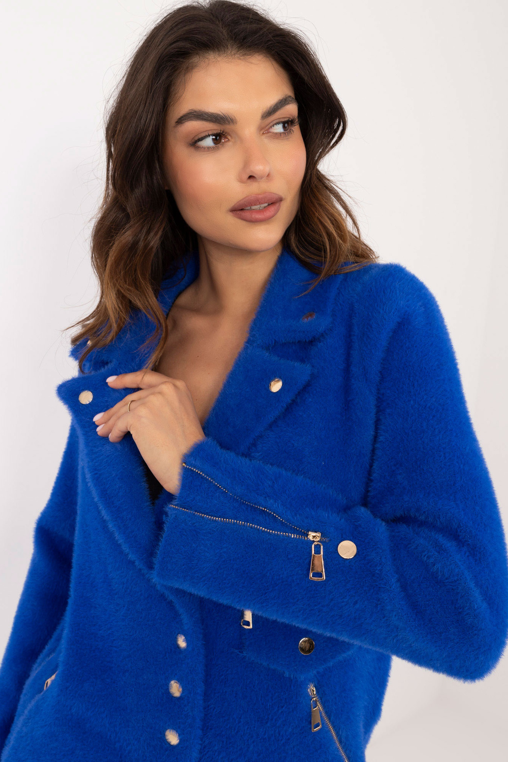 Materiálové složení: 38,4 % vlna, 23,5 % polyester, 15,3 % angora, 22,8 % viskóza