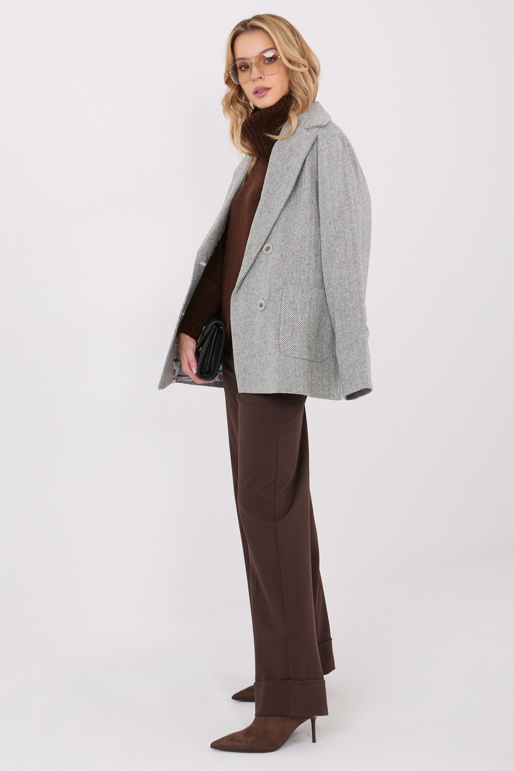 Rozměry saka jedné velikosti měřené na plocho: šířka pod pažemi - 55 cm, délka rukávu - 64 cm, šířka přes boky - 57 cm, celková délka - 73 cm.