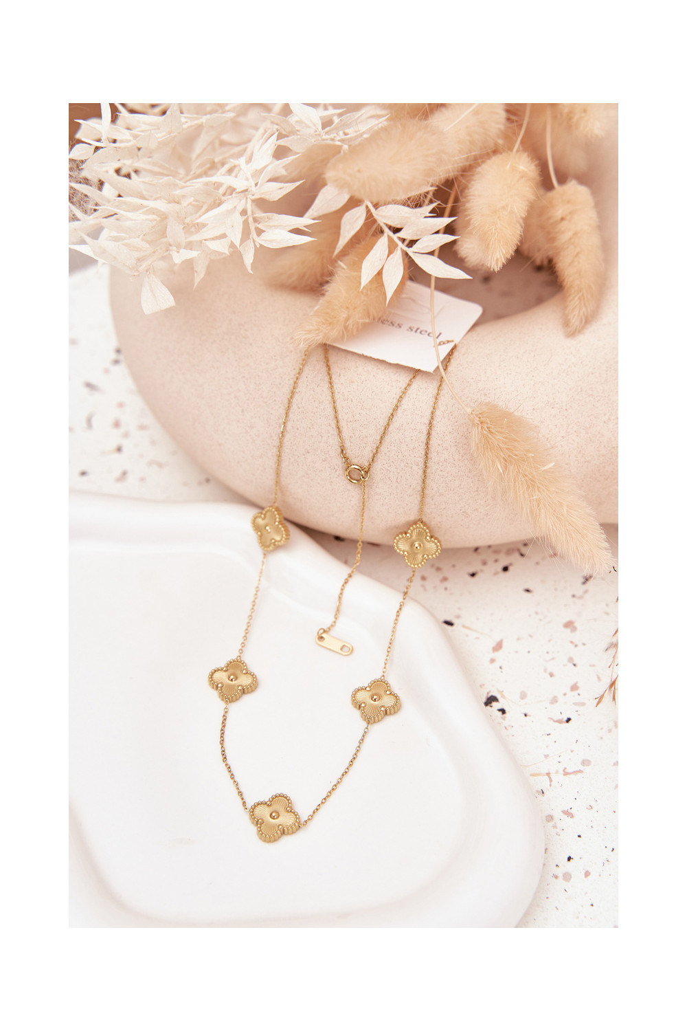 šperky na krk z nerezové oceli Z s květinovými motivyuszkami zlaté barvy