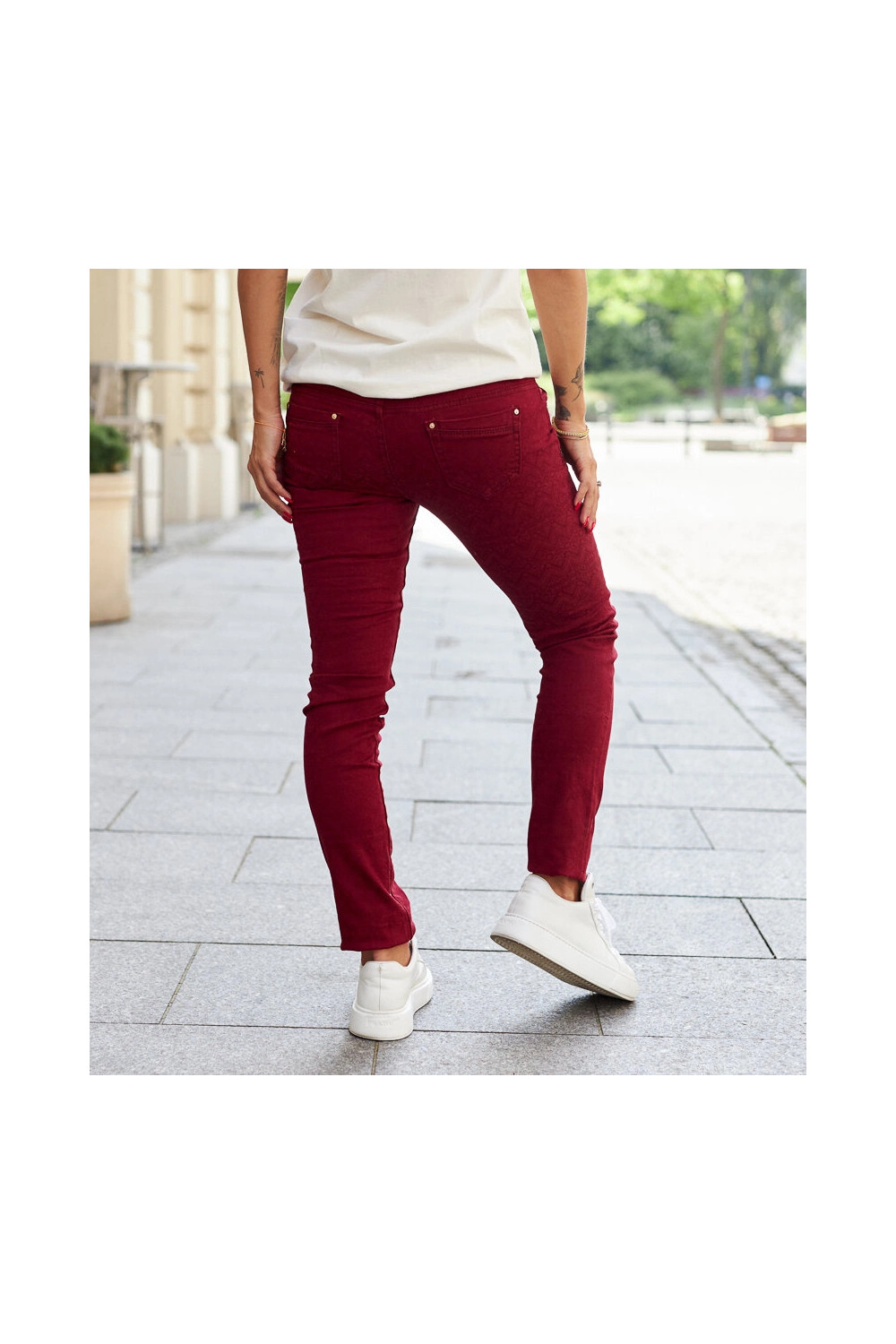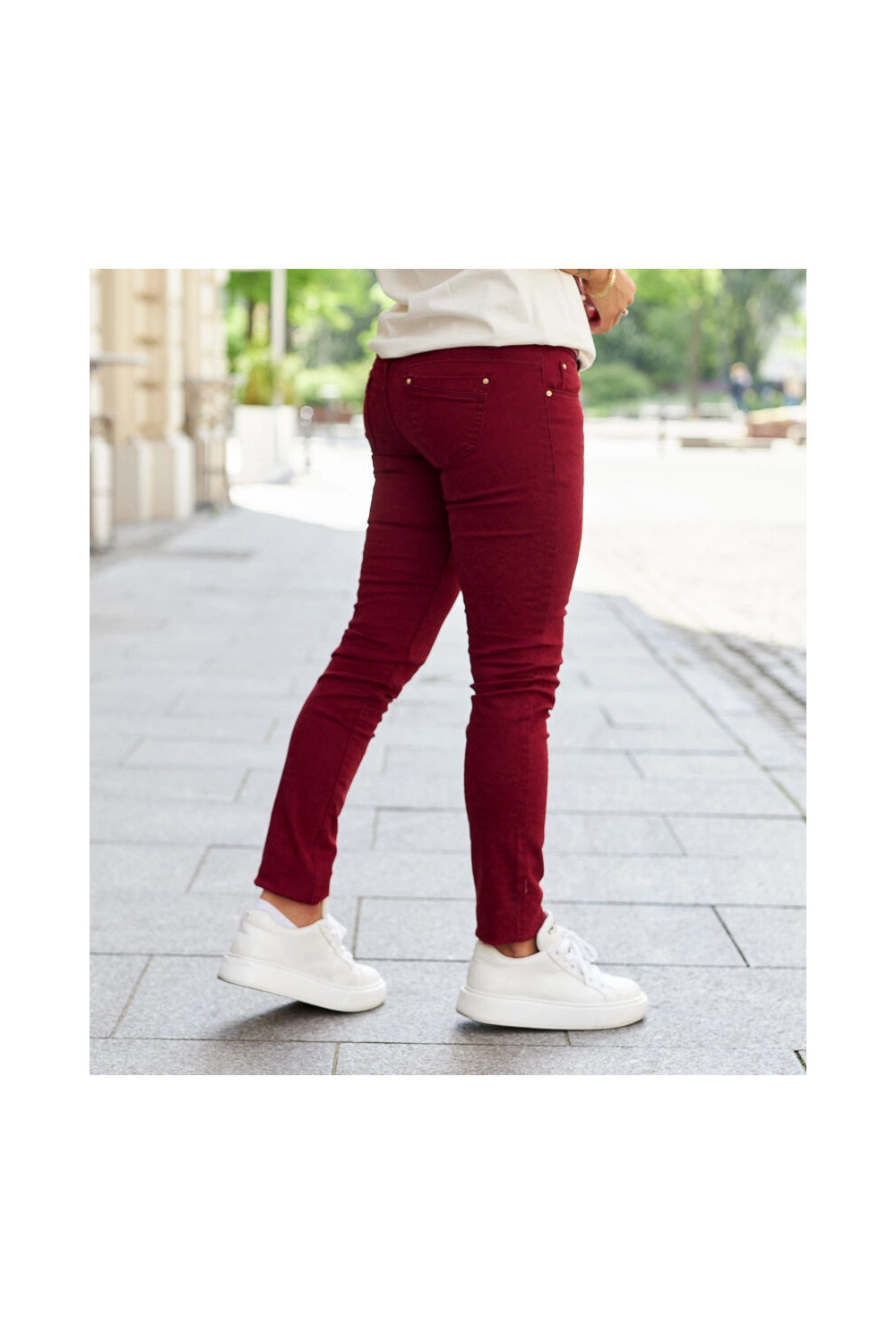 Červené látkové kalhoty s páskem Sylvain