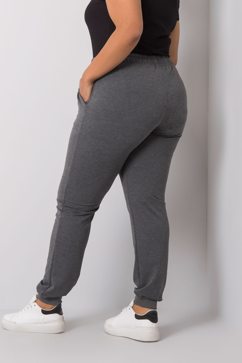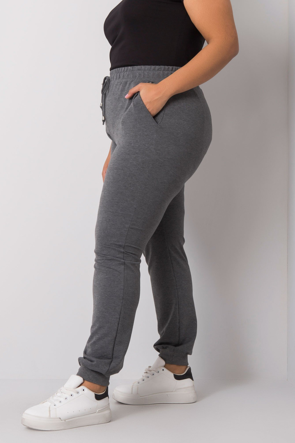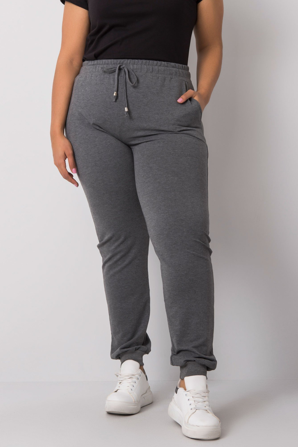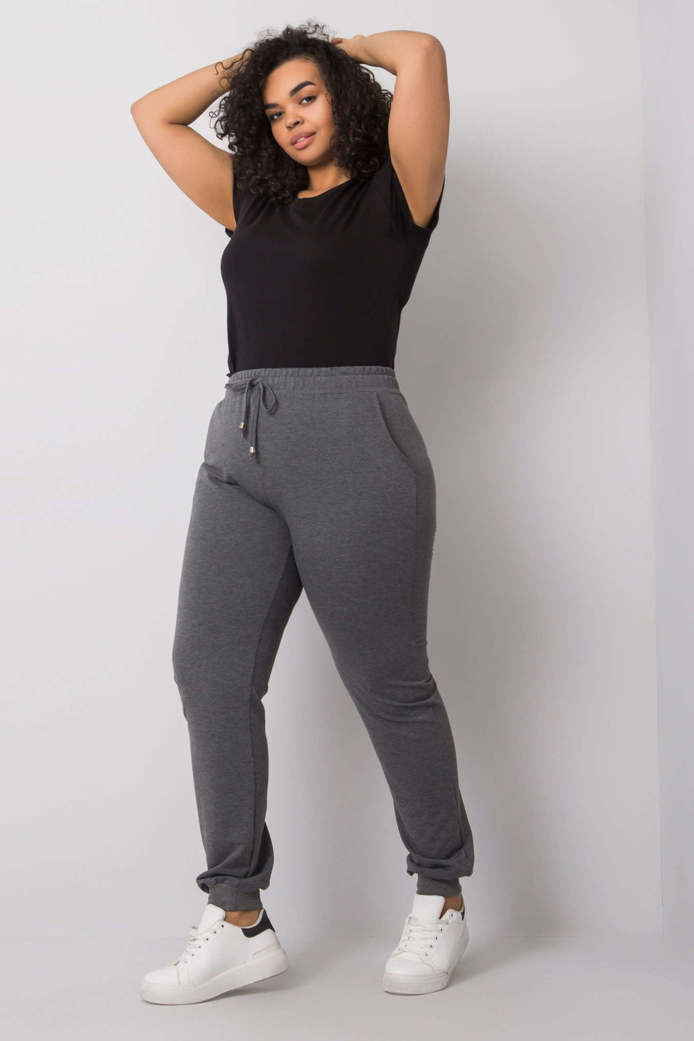 Tmavě šedé melírované dámské volnočasové kalhoty ve velikosti plus.