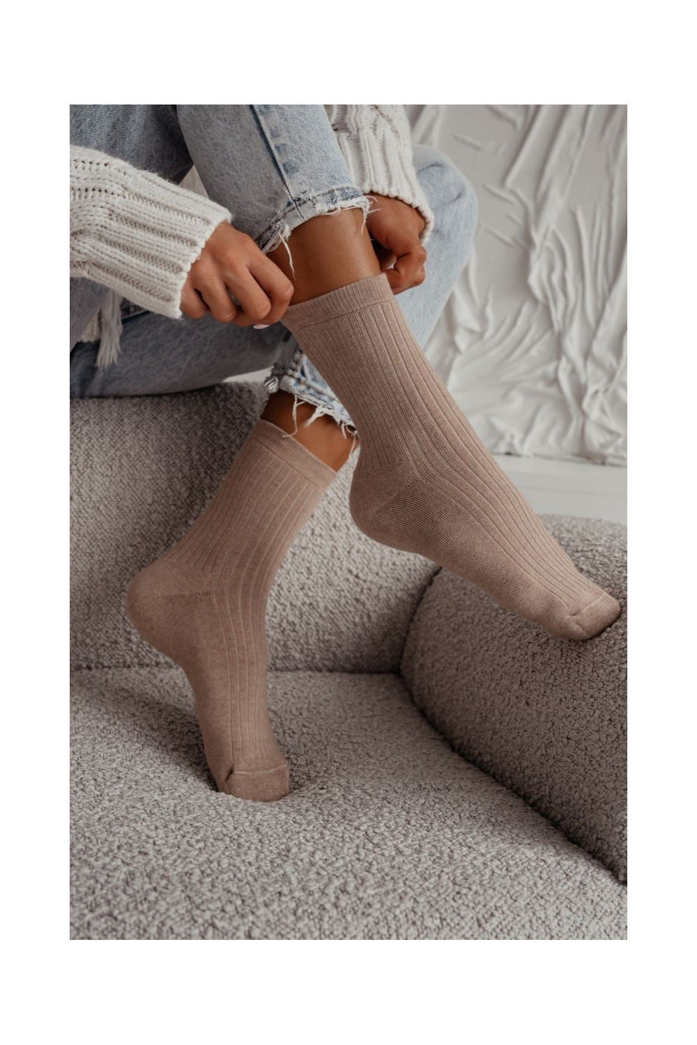 Ponožky FrottePrążek béžové