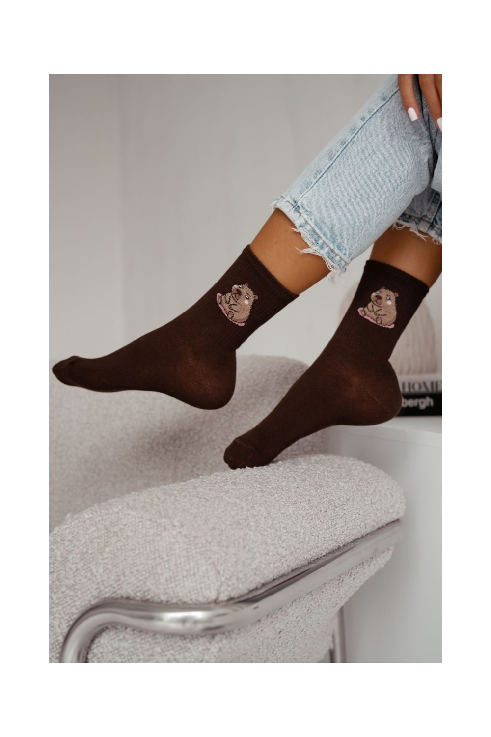 Ponožky Bawełniane Siedząca Kapibara Czekoladowe