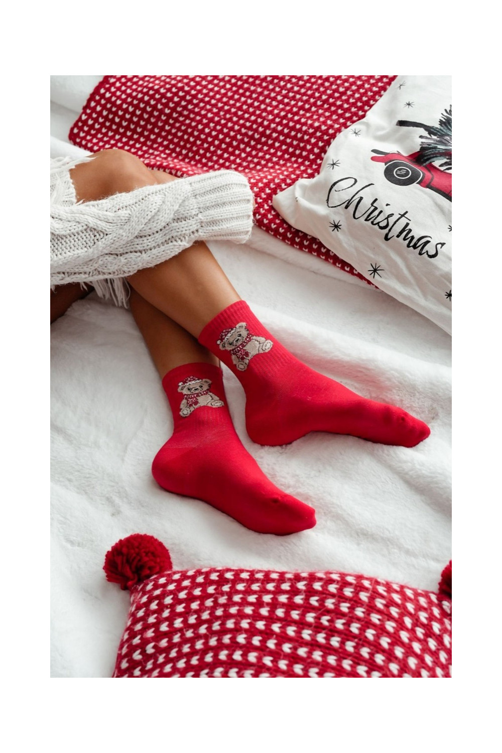 Ponožky Vánoce Medvídci Santa Clausa červené