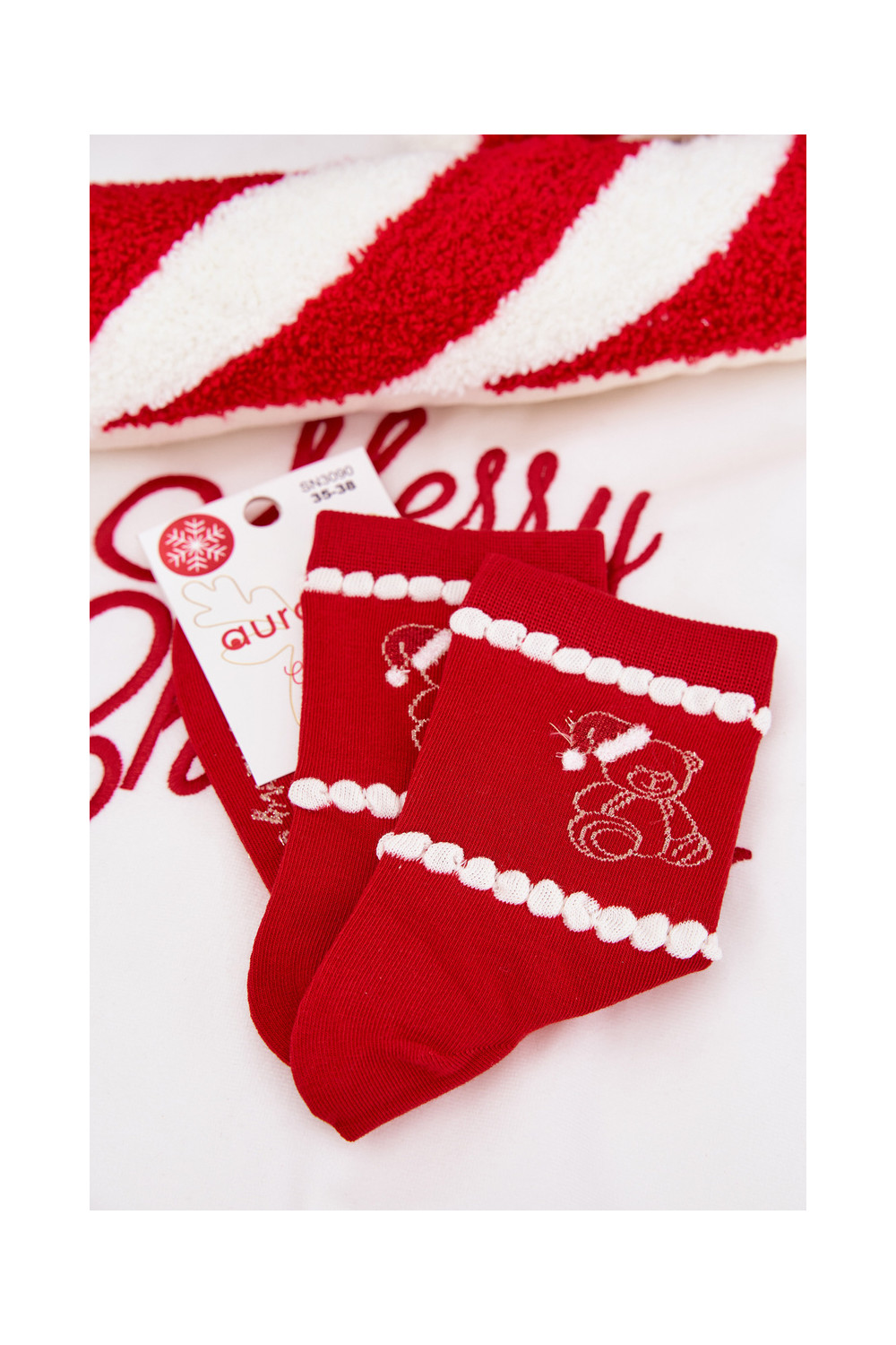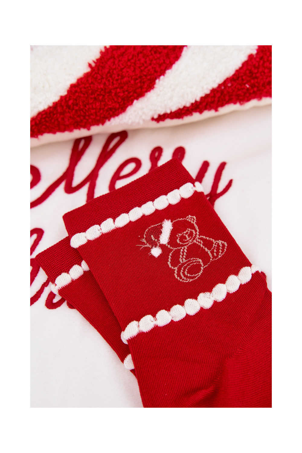 Ponožky Vánoce Medvídci Santa Clausa červené