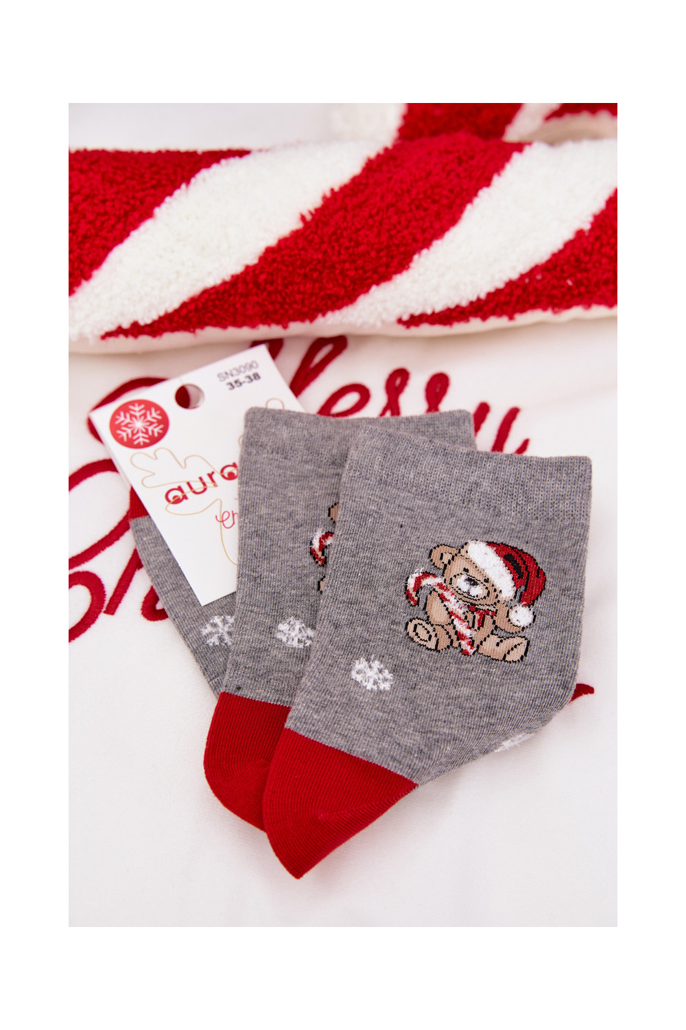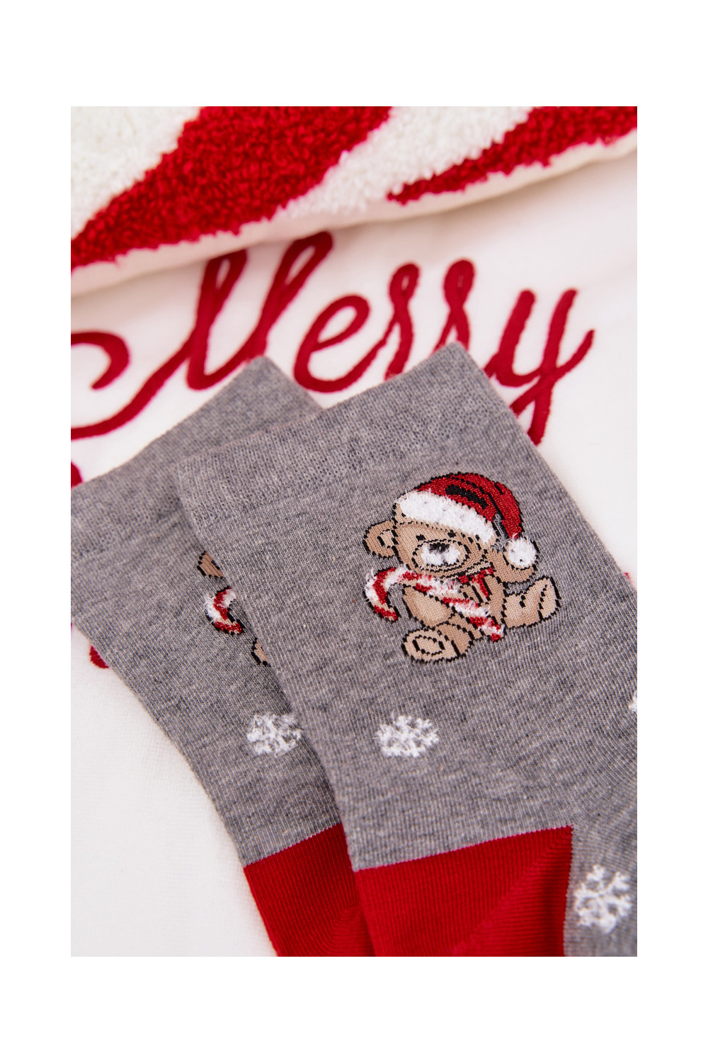 Ponožky Vánoce Medvídci Santa Clausa šedá