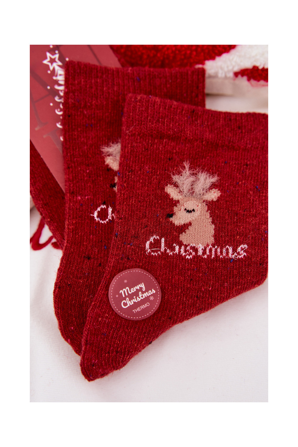 Ponožky  Vánoce s jelenem Wełna s alpakami červené