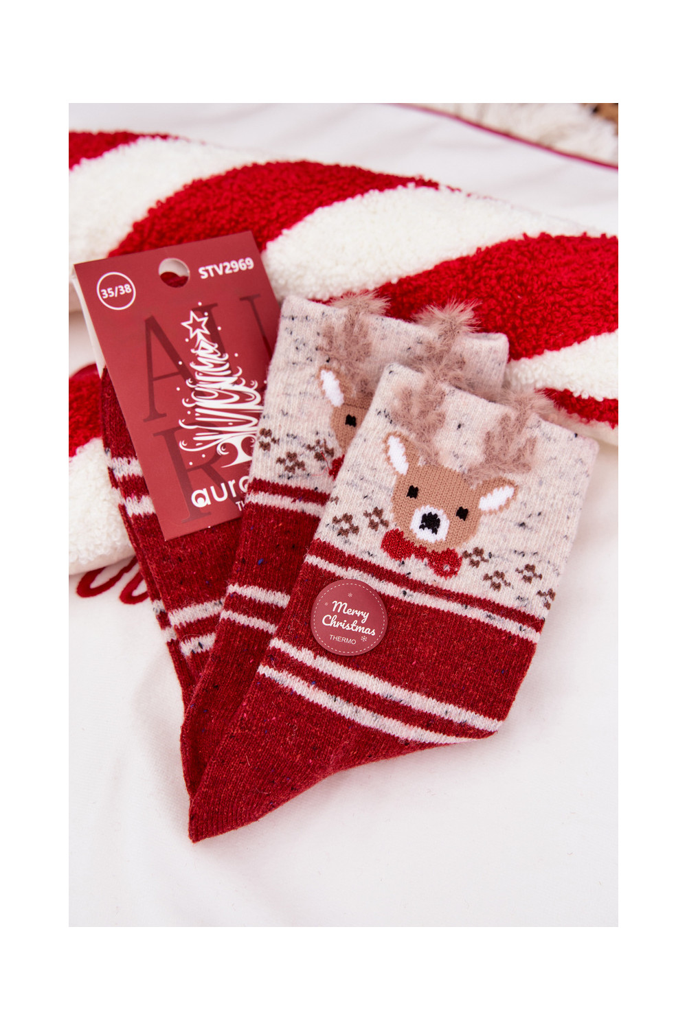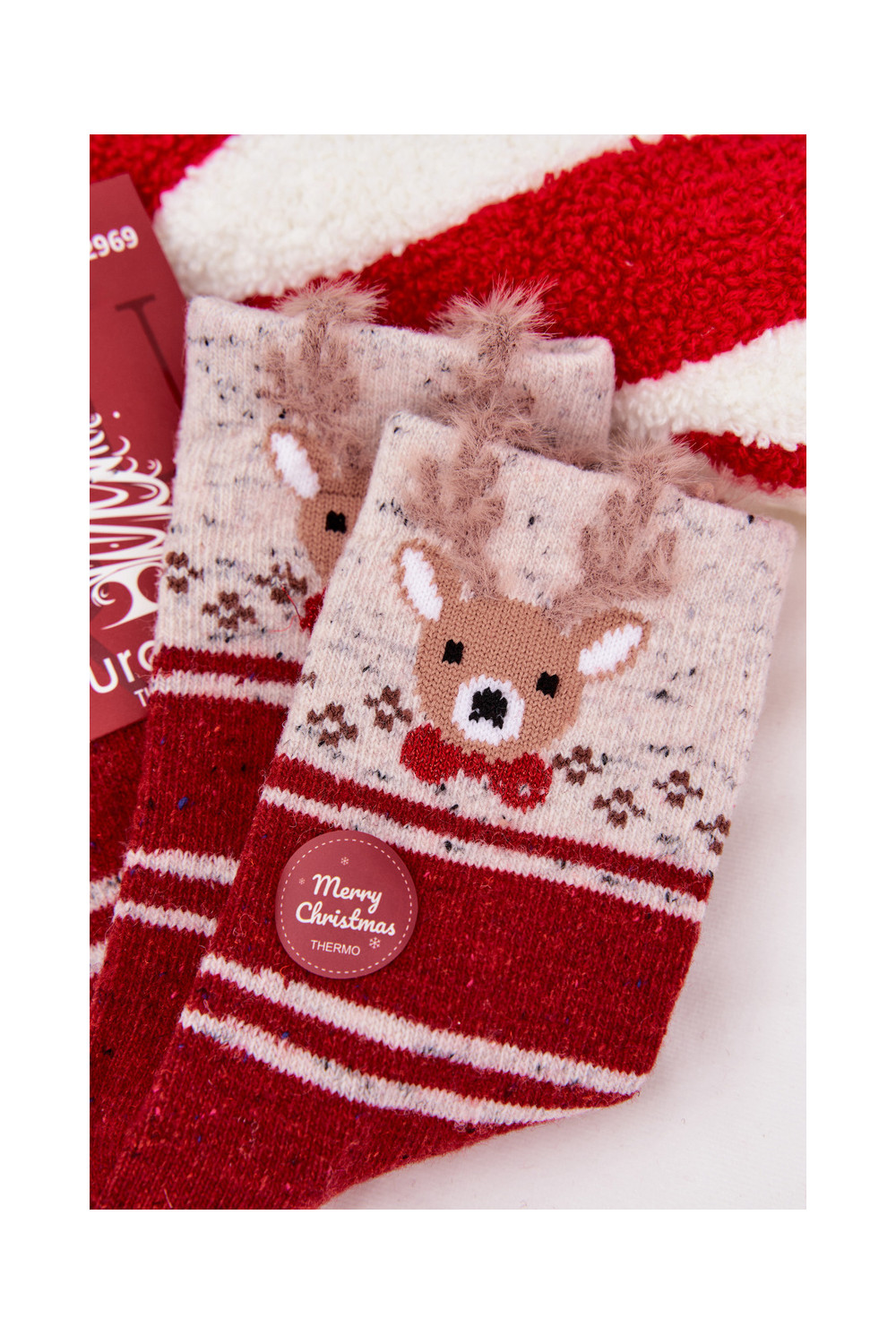 Ponožky Vánoce s jelenem I Paskami Wełna s alpakami červené