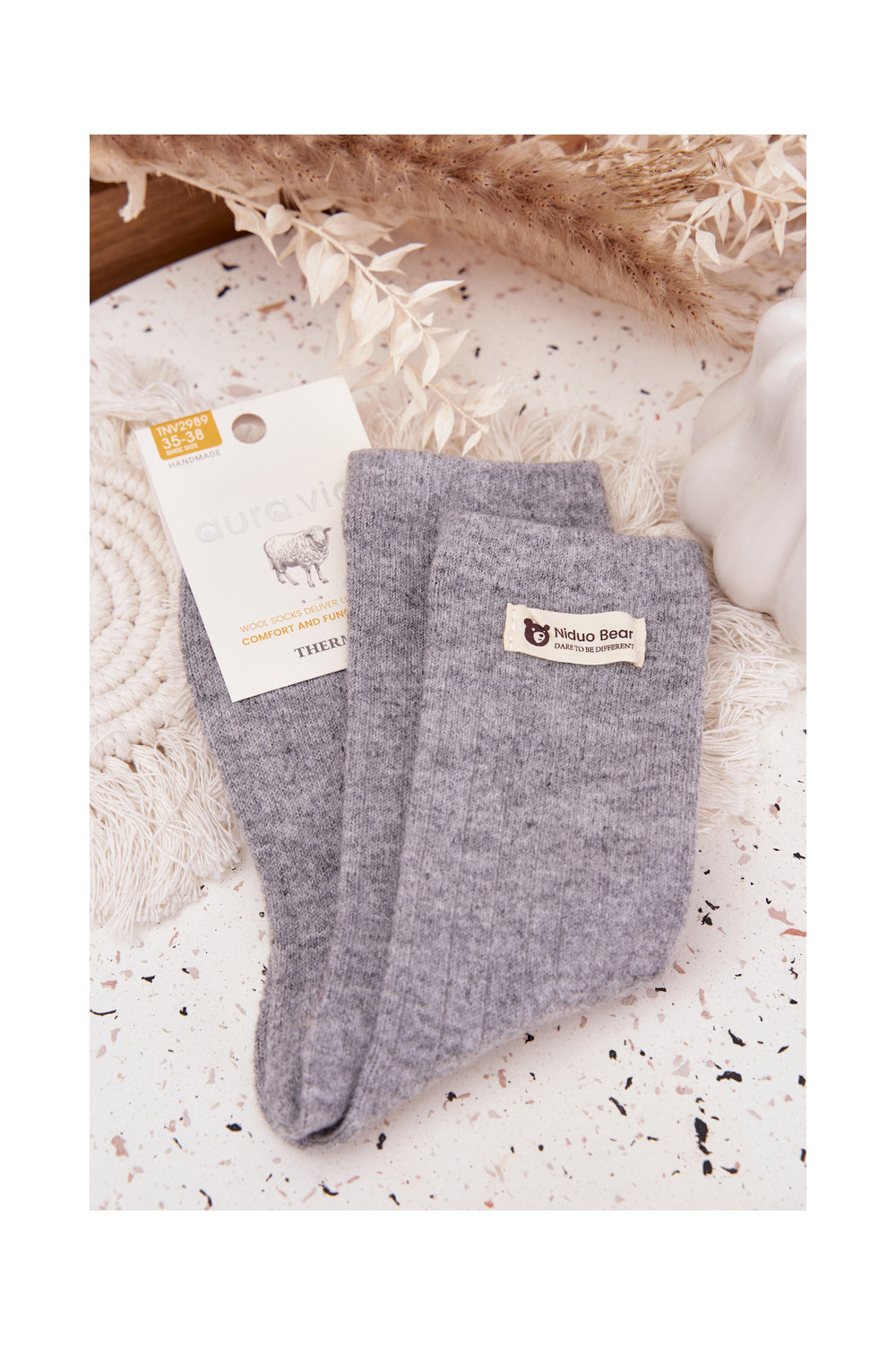 teplý Wełniane Ponožky  Z Naszywką šedá
