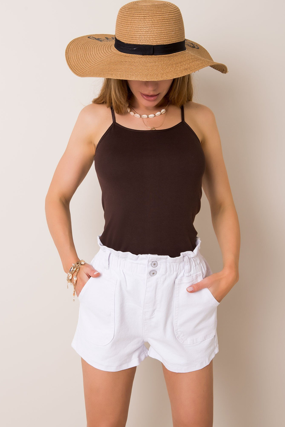 Hnědá Bastille je náš návrh pro módní klienty, kteří chtějí ve svém každodenním vzhledu spojit pohodlí se žhavými trendy. Předváděný model zaujme nepřehlédnutelným barevným provedením, které jej odlišuje od ostatních. Můžete si ho sestavit v nejrůznějších outfitech do města i do práce. e se bude hodit i tehdy, když nebudete vědět, co si vzít na speciální příležitost. Základní košile bez rukávů je vyrobena z high-end bavlny, díky čemuž je její používání velmi pohodlné. Můžete jej libovolně postavit vedle džínových kraťasů nebo vzorovaných kalhot z látky. Top basic zdůrazňuje silné stránky siluety, aniž by ji podrazil. Jednou provždy se nákupem v našem internetovém obchodě rozlučte s problémem módního univerzálního oblečení a obohaťte svůj šatník o základní topy špičkové kvality