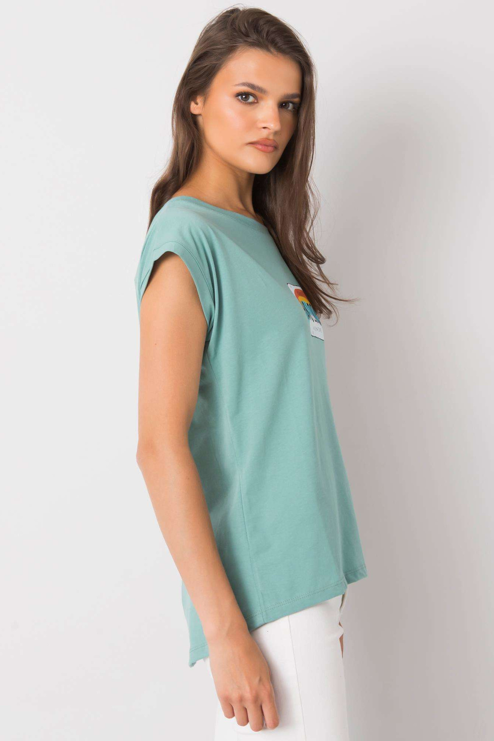 Světle zelené tričko s potiskem Aloha. materiál složení: 95% bavlna, 5% lycra způsob praní: lze prát v pračce na 40°C Modelka má na sobě velikost jedna. Rozměry modelu: výška 176,5 cm, prsa 83 cm, pas 55 cm, boky 88 cm. Velikost Sizeone padne S a M