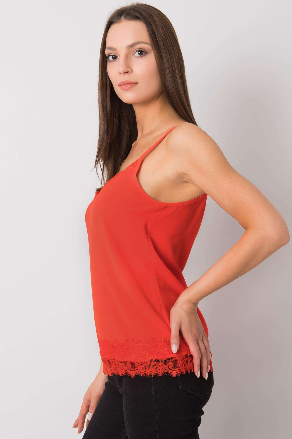 Dámský červený top s krajkou Leyla.