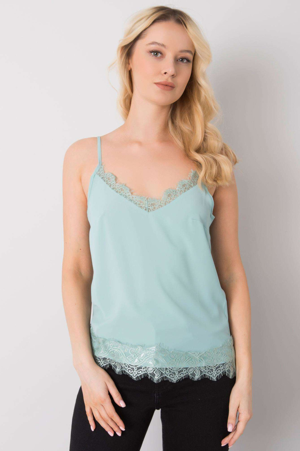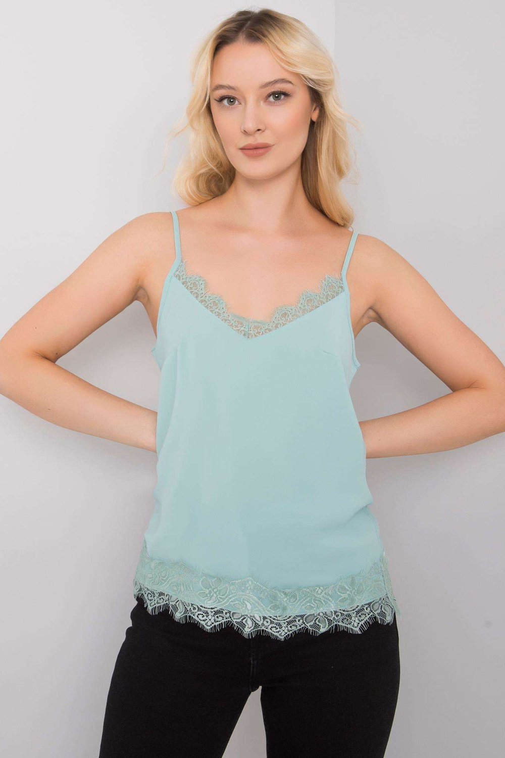 Dámský mentolový top s krajkou Leyla.
