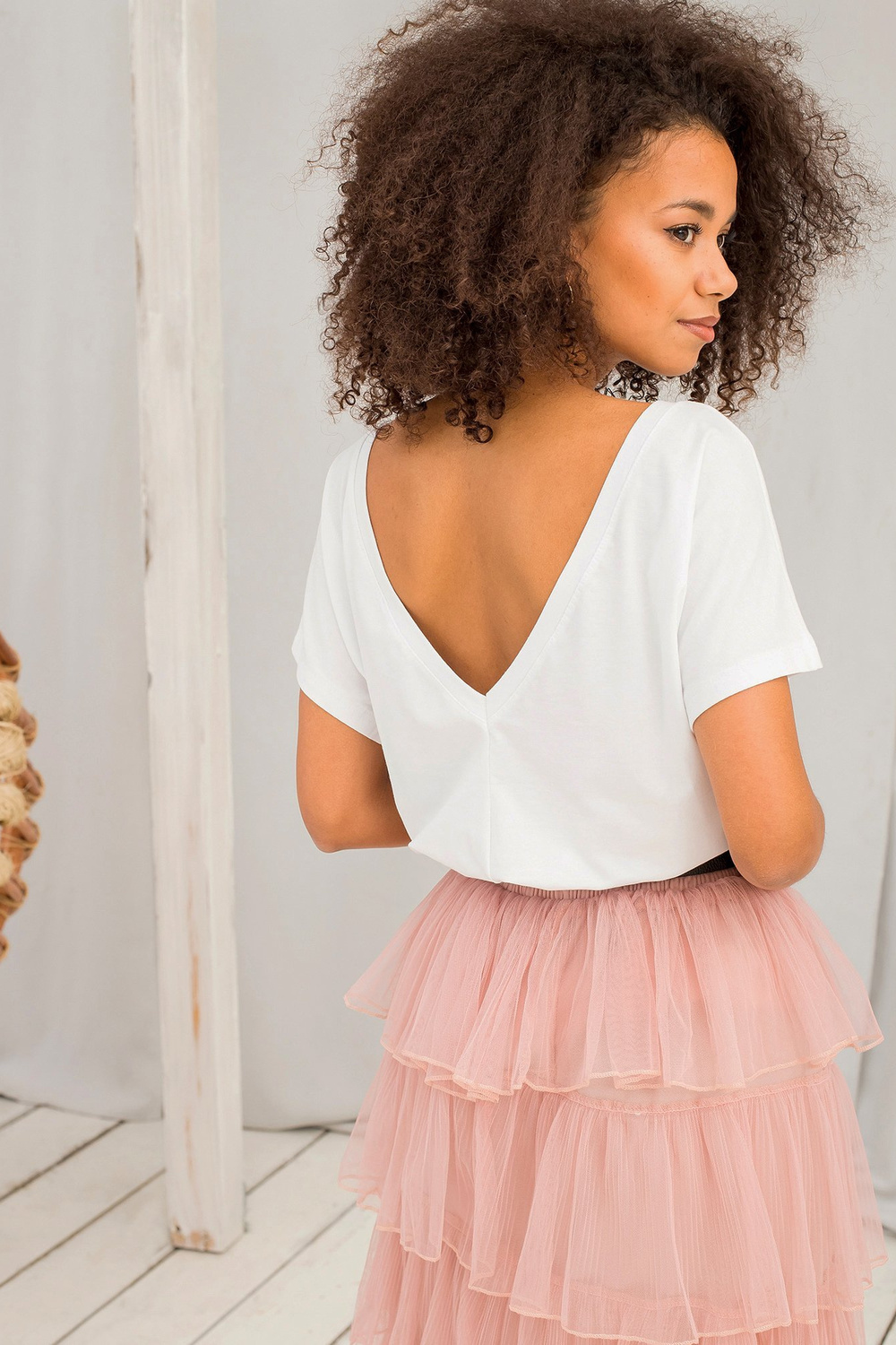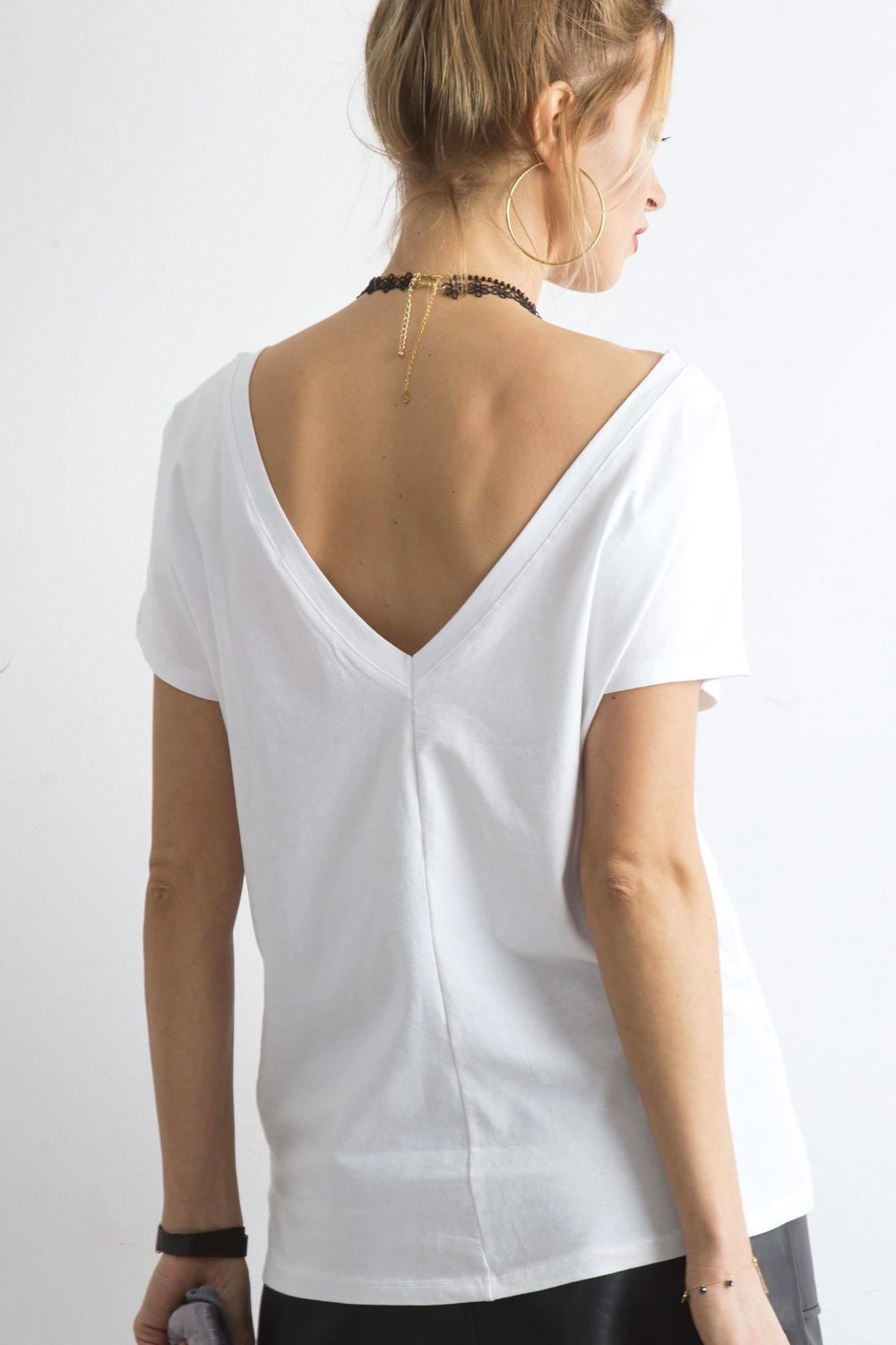 Bílé dámské tričko s výstřihem na zádech Fire . Jednobarevná bavlněná trička jsou jedním ze základních stylů, které by měla mít ve svém šatníku každá žena, která si cení módy. Jedním z nejdůležitějších v této kategorii je basic bílé tričko, bez kterého si mnoho z nás nedokáže představit svůj každodenní styling. Tento model se hodí v podstatě ke všemu, co nosíme, a skvěle se hodí i do práce. V elegantním stylingu se bude skvěle hodit k bundě a cigaretovým kalhotám a vytvoří skvělý set s tepláky a mikinou na zip. Bez ohledu na to, který ze zmíněných stylů denně preferujete, toto bílé basic tričko vám vždy zaručí zdařilý a módní styling. Je vyrobena z měkké, vzdušné a na dotek příjemné směsi materiálů, která je velmi příjemná na dotyk s tělem, díky čemuž je nošení velmi pohodlné. Noste jej s jiným oblečením z naší základní kolekce nebo jej noste s ženskými sukněmi a vysokými podpatky.