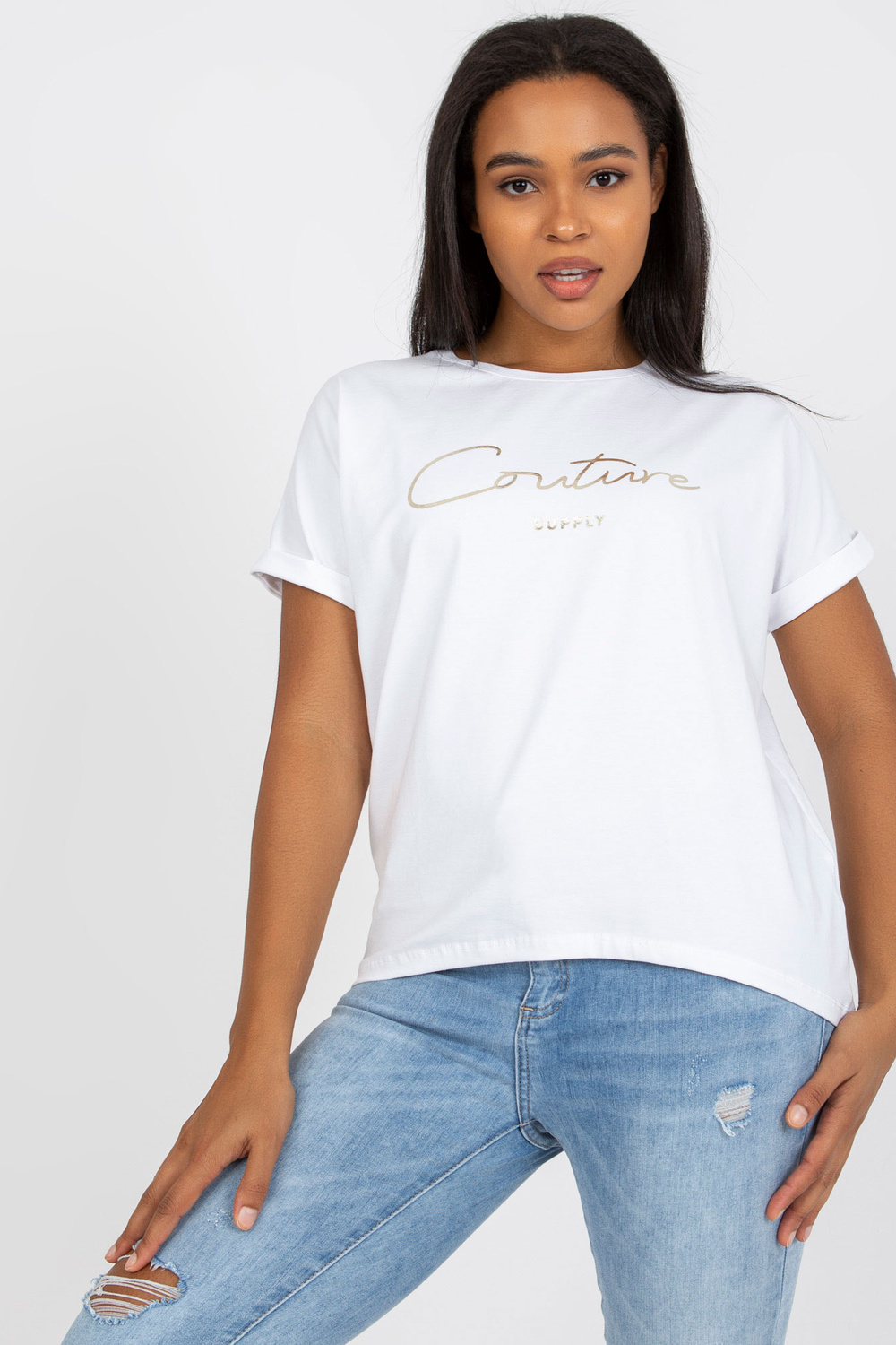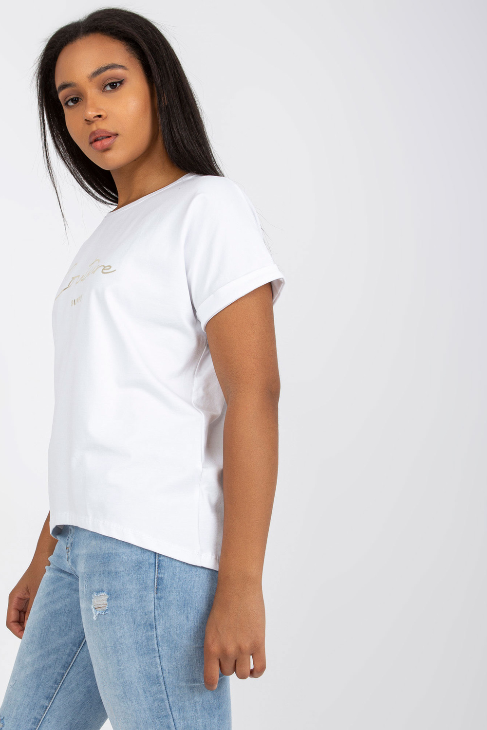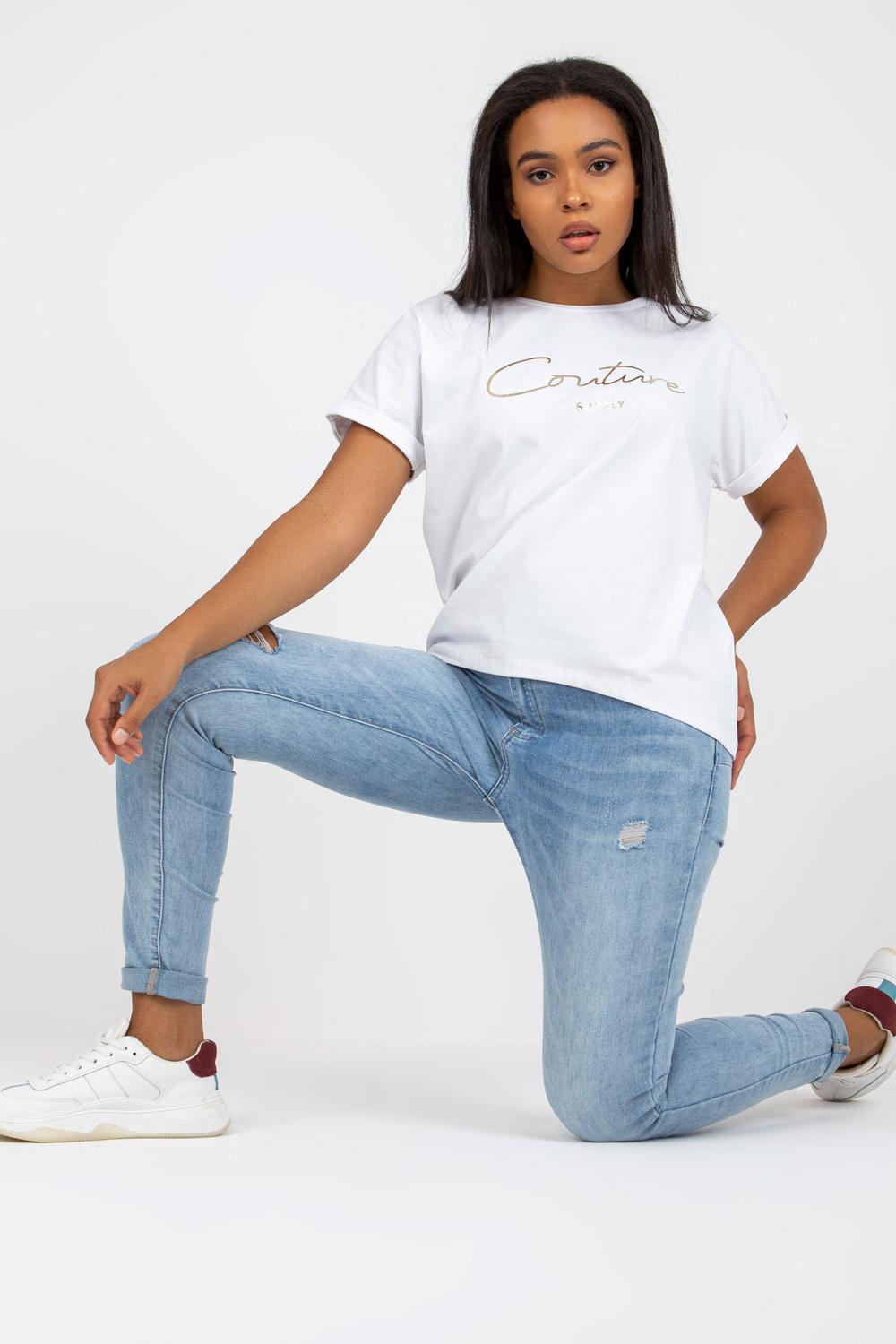 Bílé bavlněné tričko větší velikosti s potiskem.