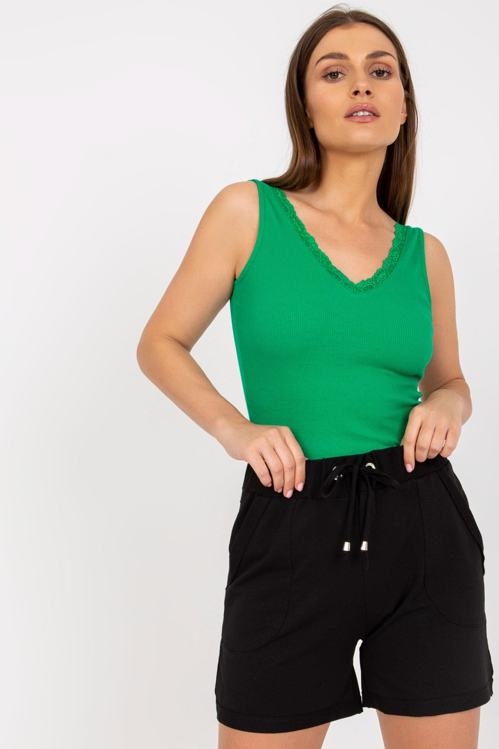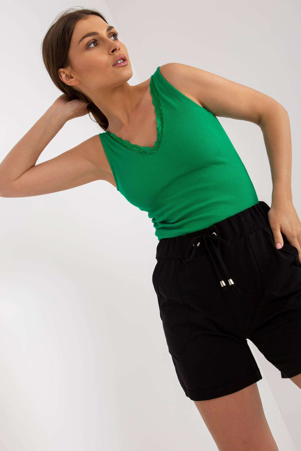 Zeleně vypasovaný top basic s pruhy RUE PARIS.