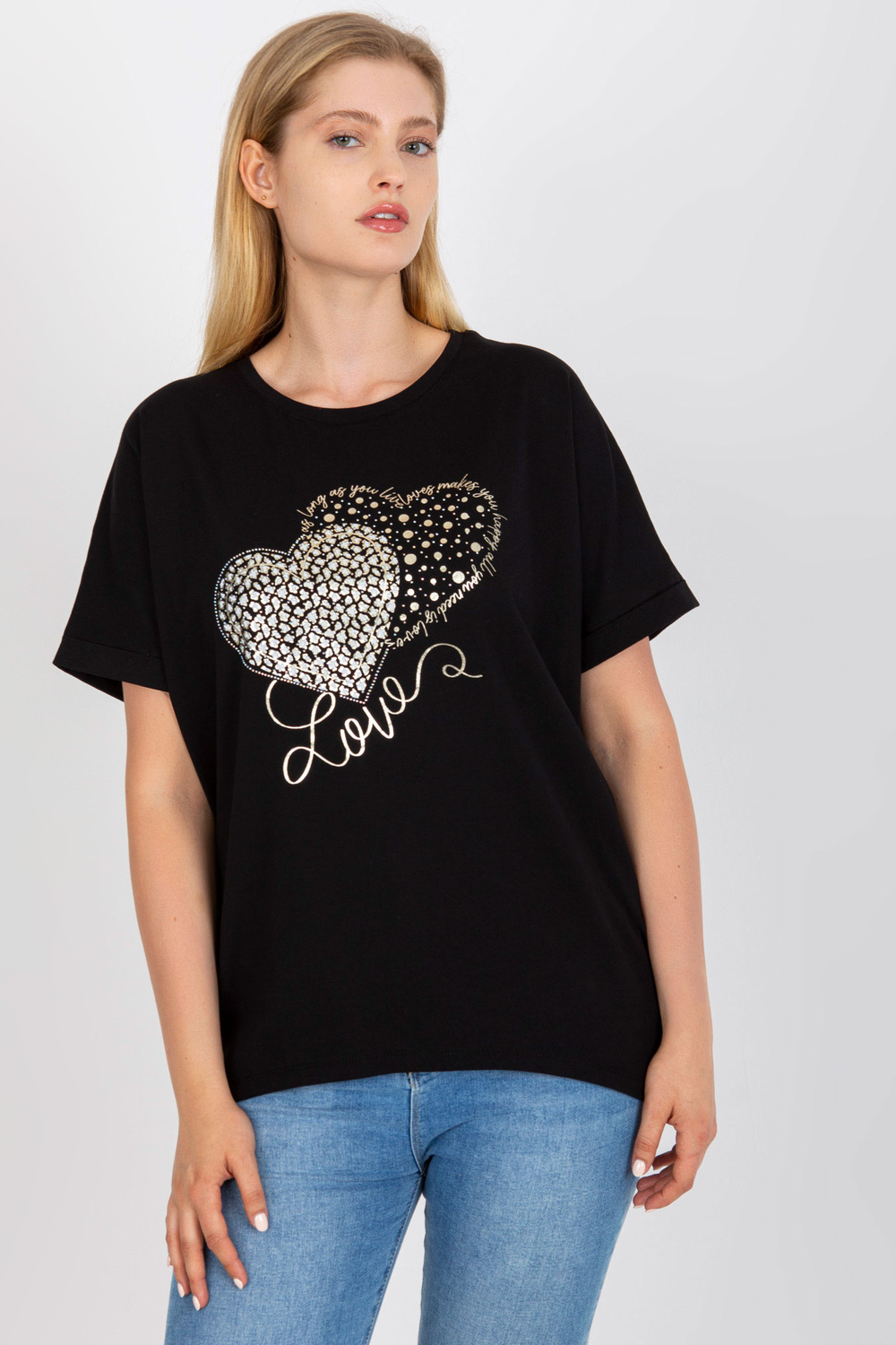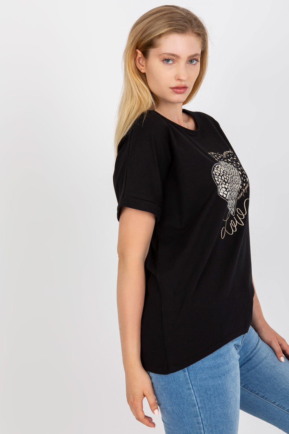 Černé bavlněné tričko větší velikosti s kulatým výstřihem