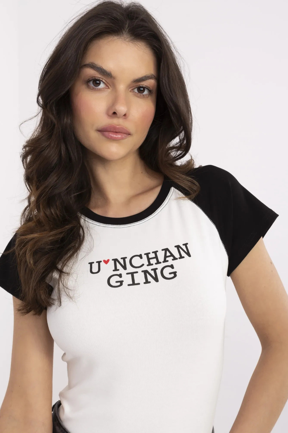 Měry trička v jedné velikosti měřeny naplocho: šířka v podpaží - 40 cm, délka rukávu - 20 cm (od švu), šířka boků - 41 cm, celková délka - 56 cm (pružný materiál).