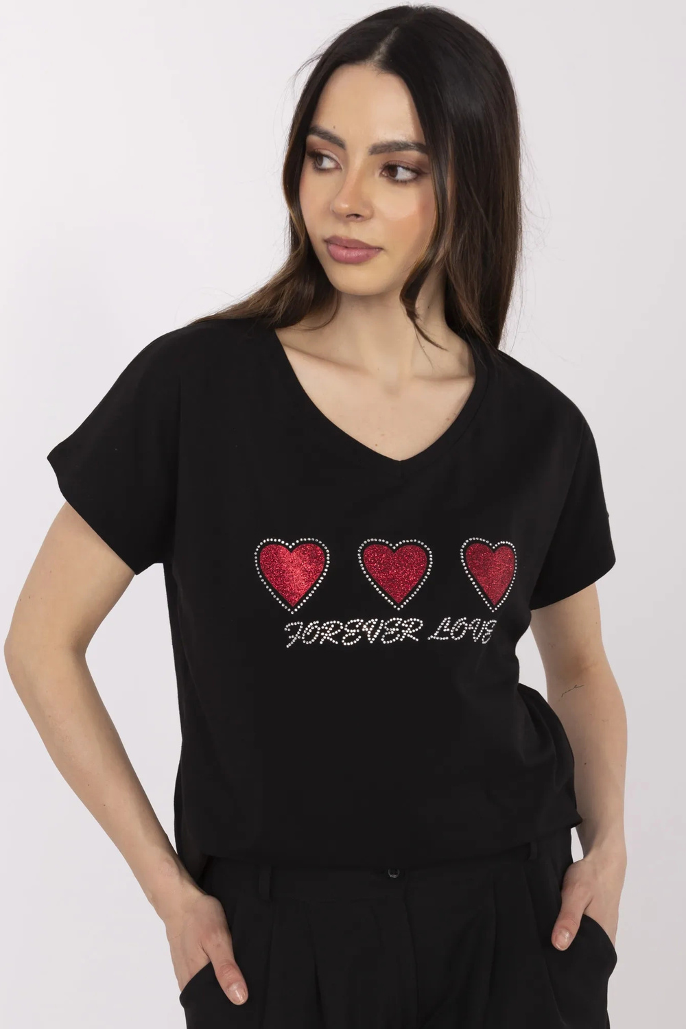 Modelka má na sobě velikost S. Míry modelky: výška 175 cm, hrudník 90 cm, pas 66 cm, boky 94 cm.