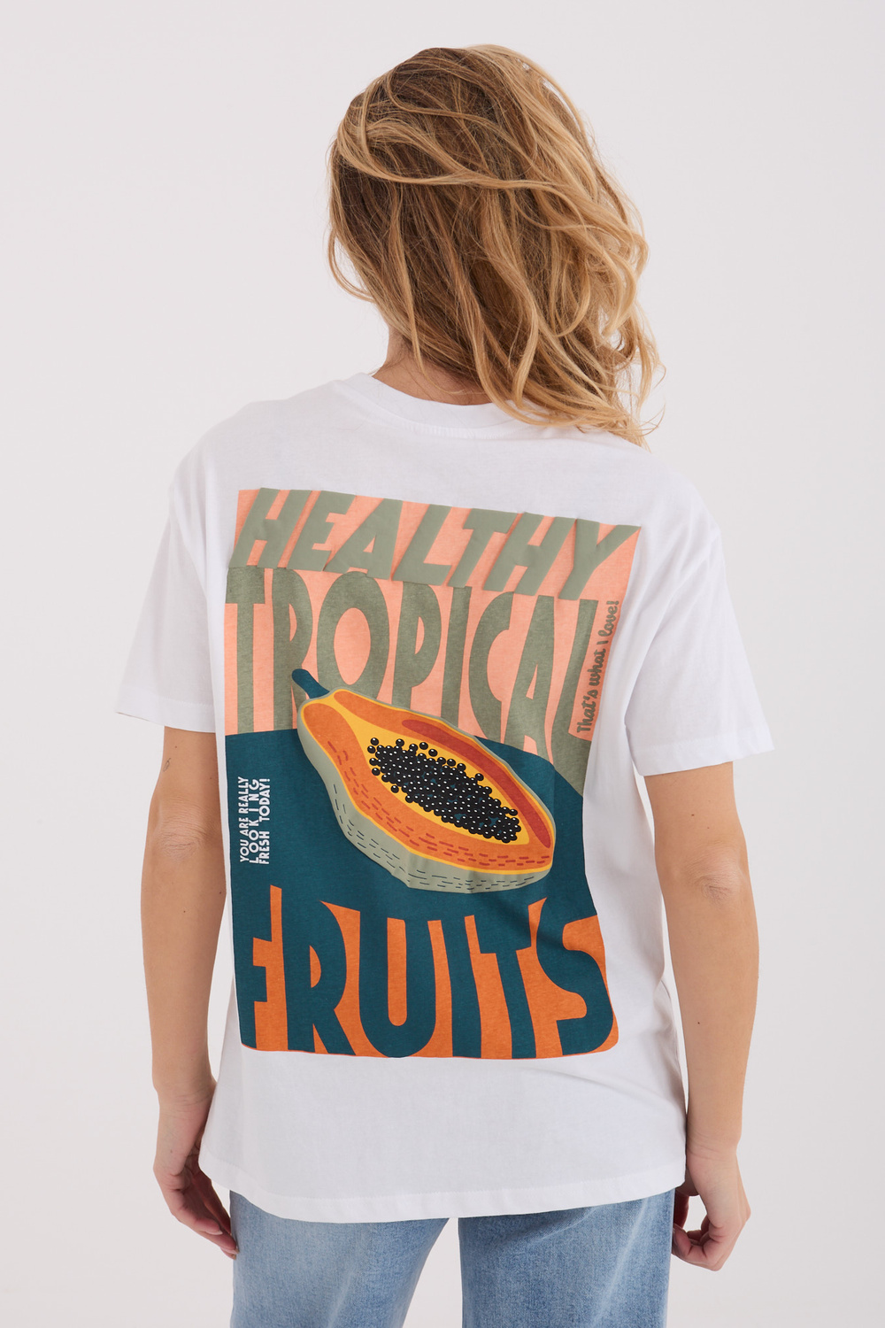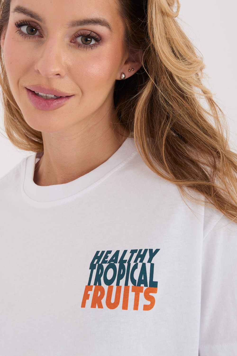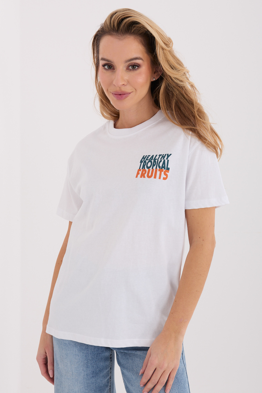 Rozměry trička velikosti S měřené vleže: šířka pod pažemi – 53 cm, délka rukávu – 17 cm (od švu), šířka v bocích – 54 cm, celková délka – 67 cm.